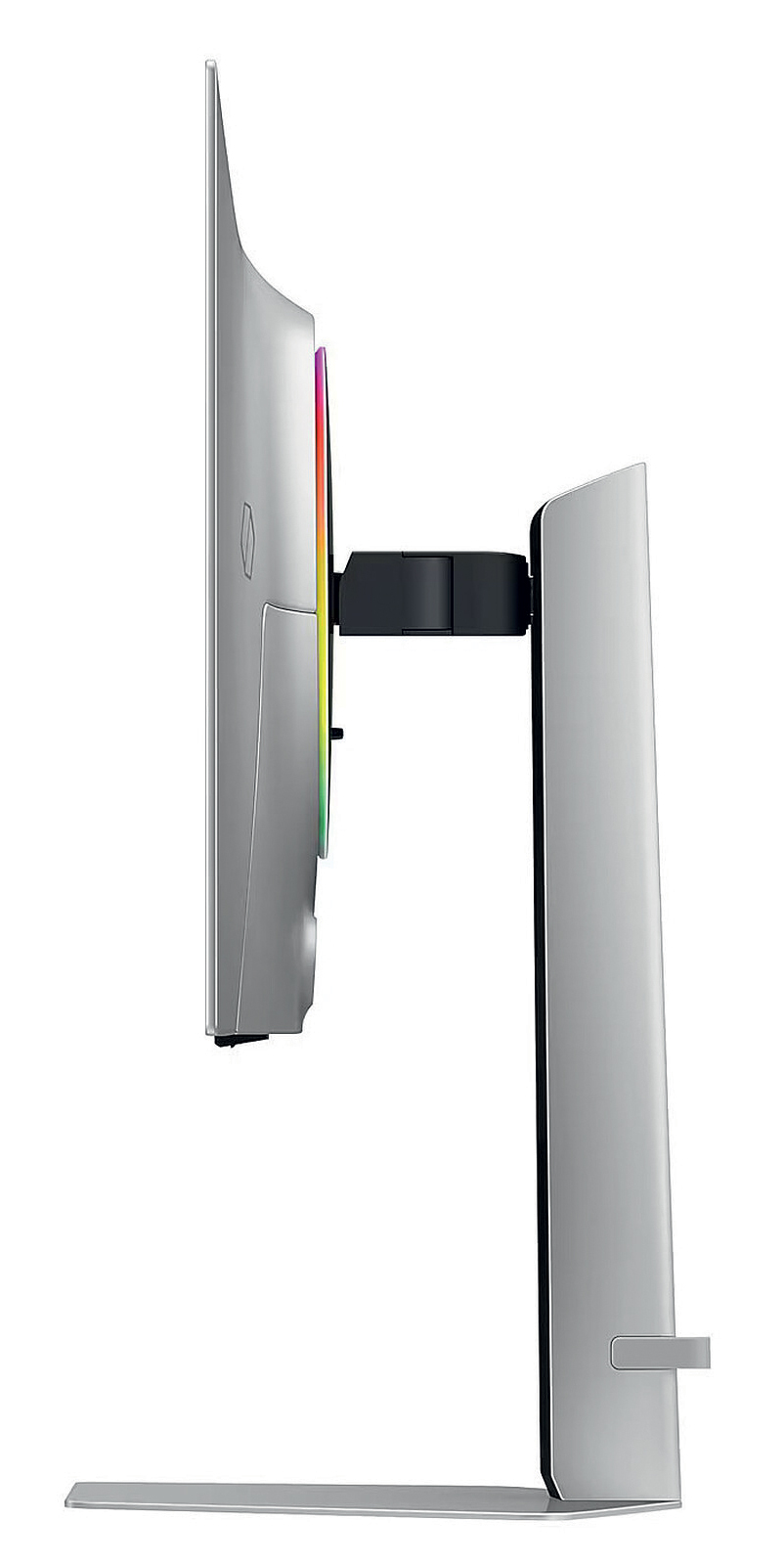 Kućište monitora je prilično tanko s matiranom srebrnom bojom, a straga ćete primijetiti RGB prsten koji daje „halo“ efekt