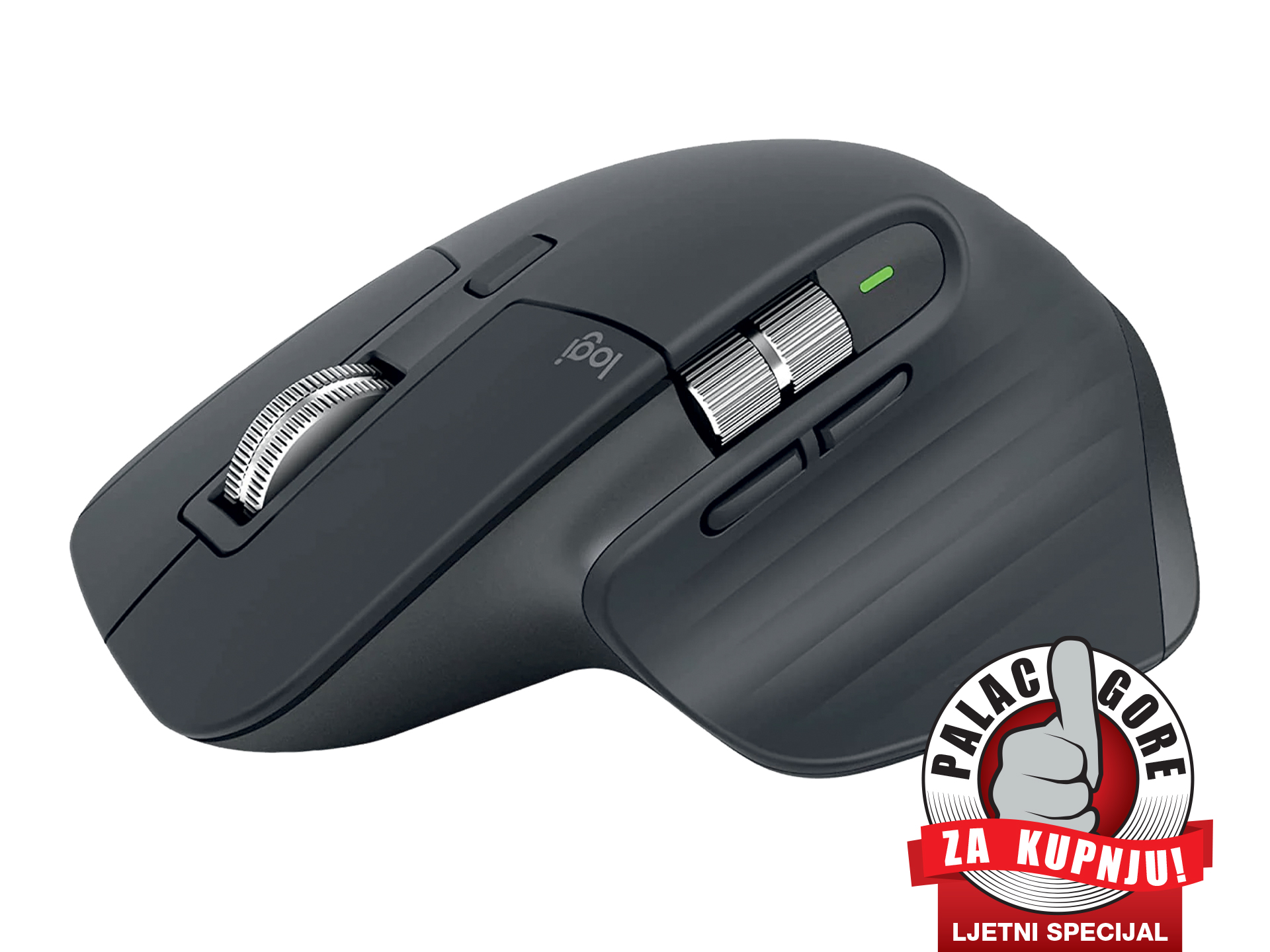 Za: Danas već definicija premium miša, MX Master 3S najmodernija je verzija home/office rješenja od Logitecha. Senzor od 8k DPI dizajniran je za precizno praćenje na svim površinama kao što je staklo, a detaljne postavke mogu se prilagoditi unutar Logi Options+ aplikacije. Svi gumbi također su dizajnirani da vam ponude zadovoljstvo klikanja sa jasnim taktilnim efektom, no osjetno su stišani kako ne biste ometali okolinu. Scroll valjak također će vam se odmah dopasti jer osim metalnog dizajna, funkcionira pomoću magneta, pa imate nekoliko opcija rada, od neometanog scrollanja do klasičnog taktilnog efekta te hibridnog načina koji ih kombinira. No, ovdje ne pričamo samo o materijalima i dizajnu, već dobivate i funkcionalnost jer se s lijeve strane miša nalazi još jedan valjak za korištenje palcem. On standardno nudi vertikalno scrollanje, dok se također može preprogramirati za druge funkcije, ovisno o aplikaciji u kojoj ga koristite, a sve to kontrolirate unutar spomenute Logi Options+ aplikacije. Za one koji žele izvući maksimum iz svakog pokreta, miš omogućuje i izvršavanje zadataka pomoću gesta koje se aktiviraju pritiskom palca prema dolje. Svi ostali gumbi se također mogu prilagoditi da rade drugačije s brojnim podržanim programima, pa vjerujemo da neće izostaviti niti jednog korisnika. Kao i drugi MX proizvodi, povezuje se sa do tri uređaja istovremeno, a možete se prebacivati jednostavnim micanjem kursora do ruba zaslona, koji će se onda prebaciti na slijedeći uređaj (laptop, tablet, PC, Mac). Lokaciju miša pratit će i tipkovnica za aktivaciju na tom uređaju, a omogućeno je i lako prenošenje sadržaja poput datoteka među uređajima.