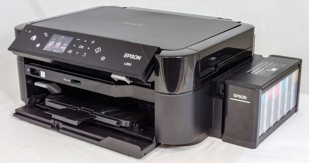 L850, Epsonov model koji je predstavljen usporedno s modelom 810, također nudi „refillanje“ boje po niskoj cijeni. Za razliku od L810, L850 je multifunkcijski uređaj koji uz ispis nudi i mogućnost kopiranja i skeniranja. Ono što L850 čini „foto“ pisačem je to što ima šest spremnika za tintu, kao i L810, uz mogućnost ispisa s ugrađenog čitača memorijskih kartica ili putem vrlo rijetko korištenog PictBridgea. Kao i ostali foto pisači s ekranom u boji moguća je i osnovna korekcija automatskih boja i svjetline fotografija, a u skladu s većinom InkTank pisača, i L850 se na računalo može spojiti samo putem ugrađenog USB priključka.