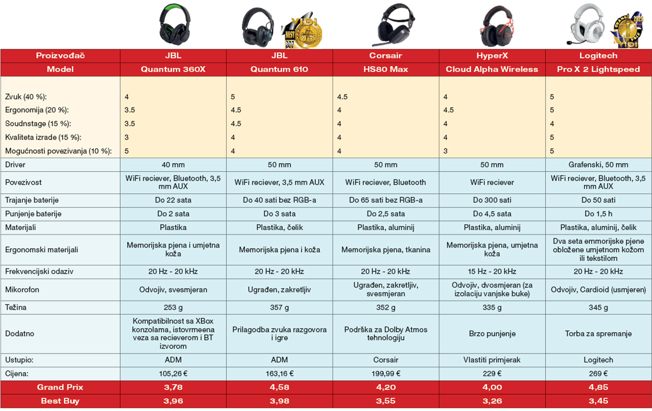 Dok bežične slušalice danas nisu novost, mogu se naći u vrlo širokom cjenovnom rasponu. Čak smo se iznenadili što sve možete dobiti po vrlo atraktivnim cijenama, pogotovo jer se radi o wireless implementaciji koja ipak dodaje komplikacije proizvođačima. Slušalicama je žica uvijek bila slaba točka, koja bi prva u većini slučajeva i „otišla“. Bežične slušalice daju vam dodatnu slobodu, no po nama je primarno to što neće biti povlačenja i motanja kablova na tako dinamičnom komadu periferije. Mi smo složili desetak primjeraka širokog cjenovnog raspona, a testirat ćemo njihove gaming sposobnosti. Za razliku od audio slušalica, ovdje preciznost reprodukcije nije u prvom fokusu, te imaju često „pojačan“ odaziv u dubokim frekvencijama, radi atraktivnijeg gaming doživljaja. Zato ćemo ovdje kroz nekoliko igara vidjeti mogućnost reprodukcije stereo i surround efekata, provjeriti dodatne mogućnosti na samim slušalicama, kao i pomoću njihovog softvera, a na kraju zaigrati i na mobitelu, detalj koji nove gaming generacije i te kako očekuju. Bežične slušalice također moraju paziti i na ergonomiju radi dodatne težine koju zahtijevaju baterija i ostatak hardvera, pa nam to čini dodatnu testnu točku. Na kraju, tu je i mikrofon koji također valja isprobati jer nema goreg od nejasnog voice poziva u multiplayer situacijama. Sve to zaokružit će naš test i tako ćemo u odnosu na traženu cijenu imati jasnog pobjednika u kategorijama ispod i iznad cijene od 100 €, što smatramo granicom gdje se očekivanja kupaca mijenjaju.