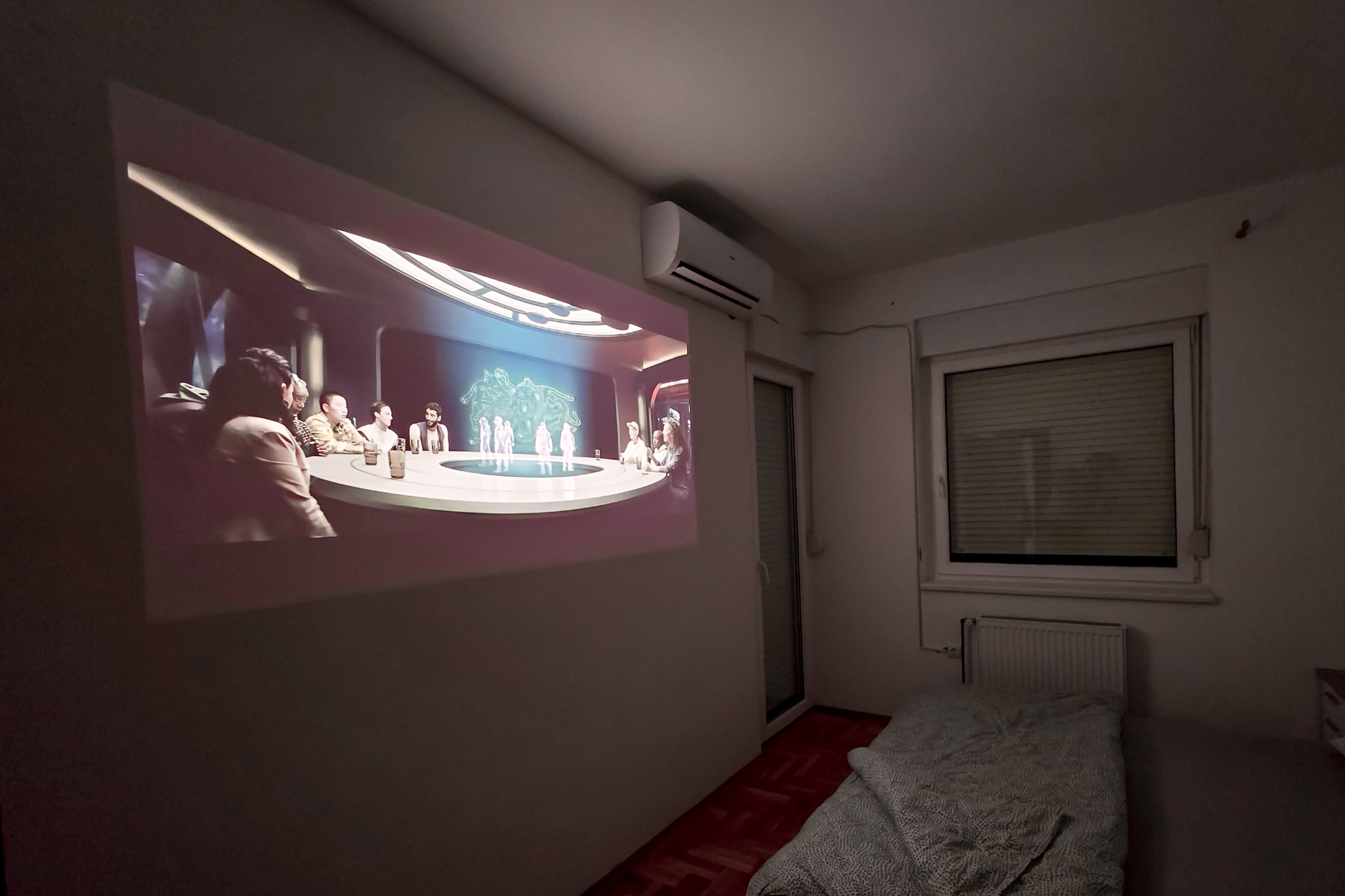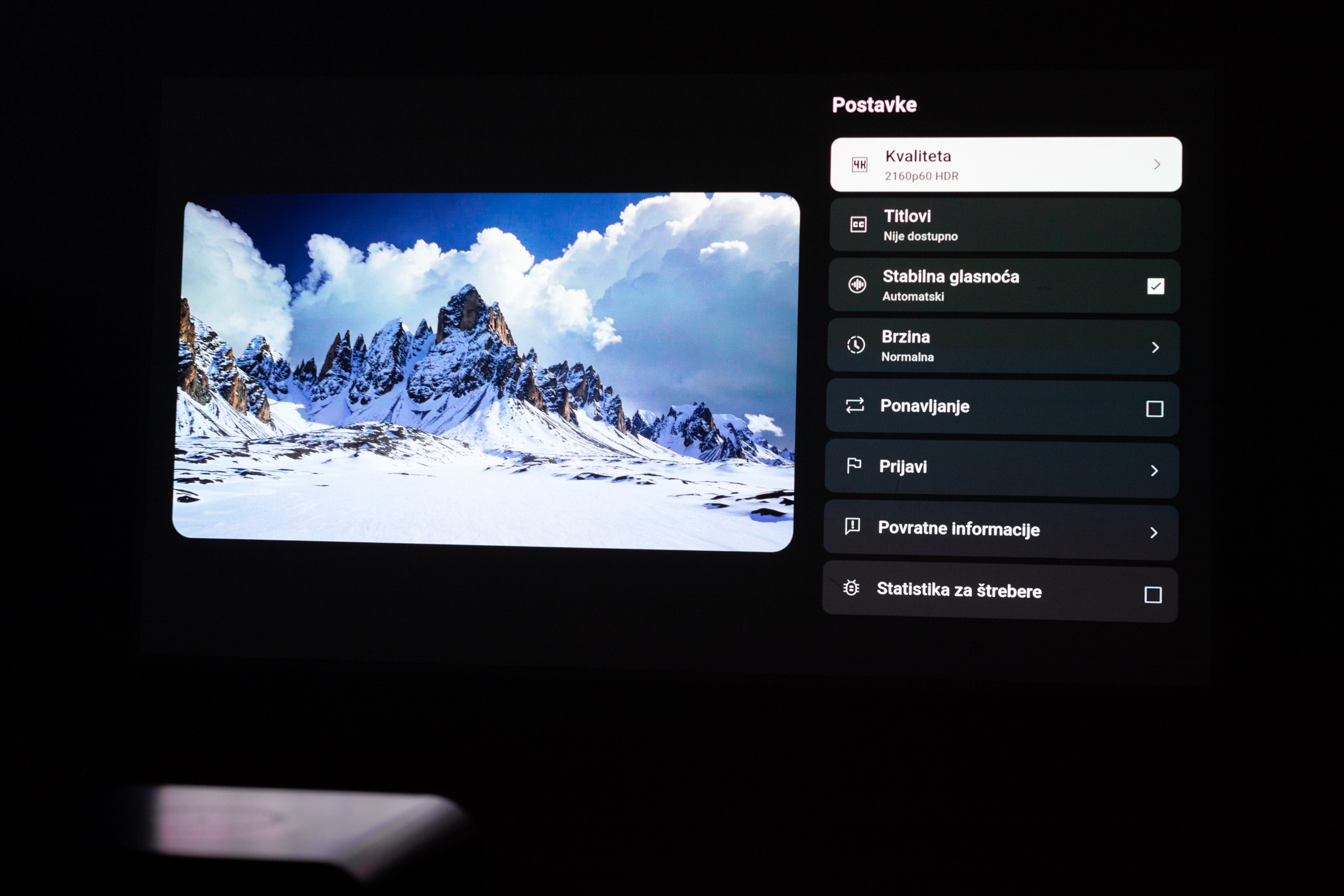Mi smo projektor isprobali na standardnom zidu, no za izvlačenje maksimalne kvalitete svakako pogledajte ponudu projekcijskih platna koji će dodatno povećati kontrast i izvući najbolji mogući prikaz sadržaja, a ujedno zauzimaju vrlo malo prostora uza zid.