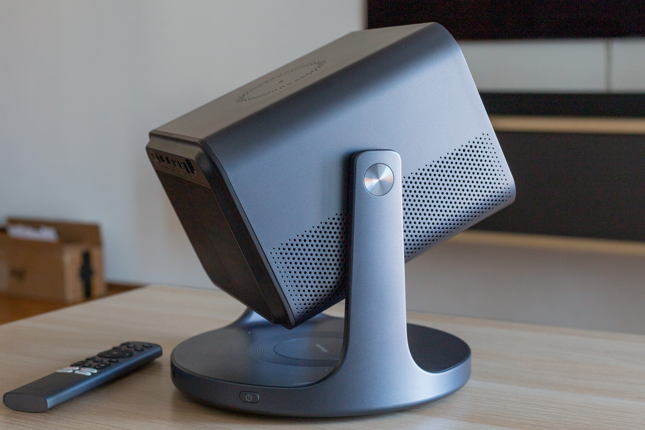 Dakle, kada projektor izvadite iz kutije primijetiti ćete da je riječ o integriranom sustavu gdje je projektor već montiran na vlastiti stalak. Stalak, osim što omogućuje jednostavno rotiranje za 360° i prilagodbu nagiba za 135°, ujedno služi za bolji cable management napajanja te ujedno pruža bolji ton zahvaljujući integriranom dubokotoncu.