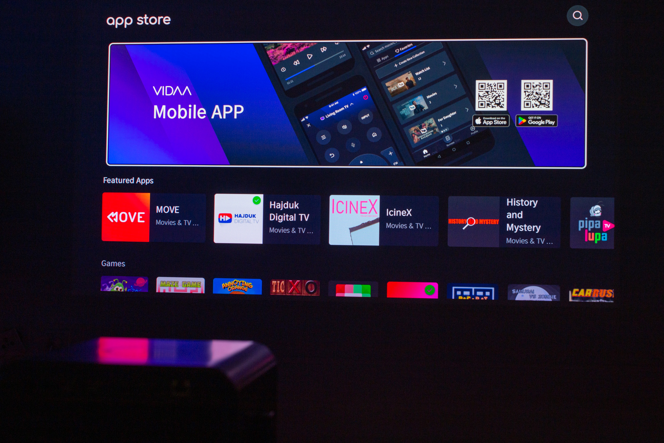 Gledanje filmova i serija nije jedina jaka strana projektora, iako dolazi sa pametnim VIDAA sustavom od Hisensa. Već su na njemu učitani popularni servisi, a u dućanu aplikacija možete preuzeti i druge popularne streaming servise.