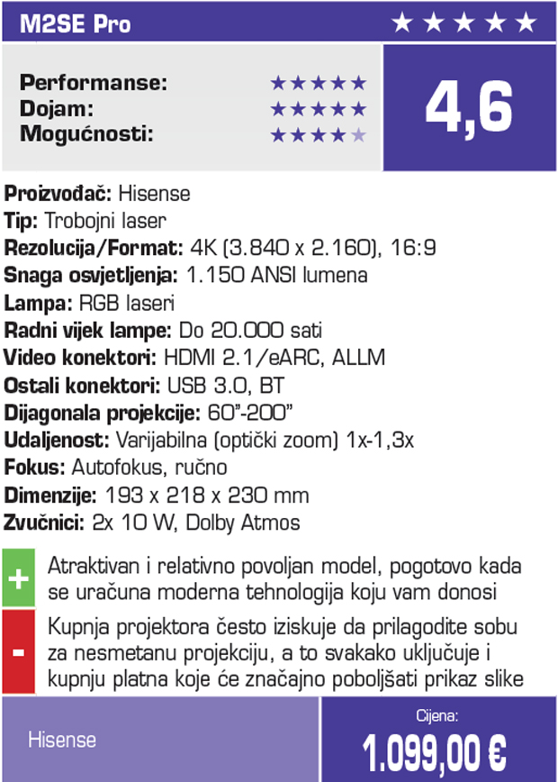 Hisense M2SE Pro: je idealan za kućnu uporabu, pogotovo u prostorima gdje možda nije idealno postavljanje televizora