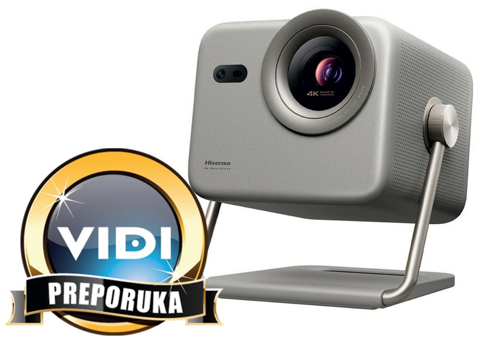 No, prava poslastica su specifikacije te tehnologija koja projicira sadržaj. Naime, ovdje je riječ o 4K projektoru koji koristi tri lasera - crveni, zeleni i plavi - za dobivanje punog spektra boja. Ovakav pristup je na samom vrhu modernog projiciranja boja te nema više zastarjelih fosfornih kotača, raznih obojanih filtera i drugih šašavih tehnologija koje samo rezultiraju gubitkom svjetlosti i nude isprane boje, a pod to uključujemo i LED izvore svjetlosti. Tri lasera daju vrlo jasne tri primarne boje koje ne gube na svom intenzitetu, te se tako postiže i iznimna pokrivenost spektra boja o kakvoj i OLED televizori za sada mogu samo sanjati. Laseri su usmjereni u mali DMD čip koji se sastoji od FullHD rezolucije, gdje je svaki piksel zapravo zasebno ogledalce koje se može signalom pomicati, a rezultat je upaljeni ili ugašeni piksel. Toj tehnologiji je dodana vibracija cijelog čipa brzinom od 240 Hz, u četiri smjera. Tako jedan piksel može prikazati četiri susjedna, odnosno dobivate 4K rezoluciju kakvu projektor dobiva u inputu. Input može biti HDMI izvor, ili pak pametan VIDAA U7 OS kojim možete lako streamati preko svih popularnih servisa bez ikakvih problema, u punoj 4K rezoluciji sa HDR podrškom, kao i Dolby Audio sustavom, a lako je projektor spojiti i na vanjske zvučnike poput soundbara. Projektor podržava i 3D reprodukciju (s adekvatnim naočalama), a lako ga je usmjeriti bez obzira na izgled prostora jer je montiran na gimbal.