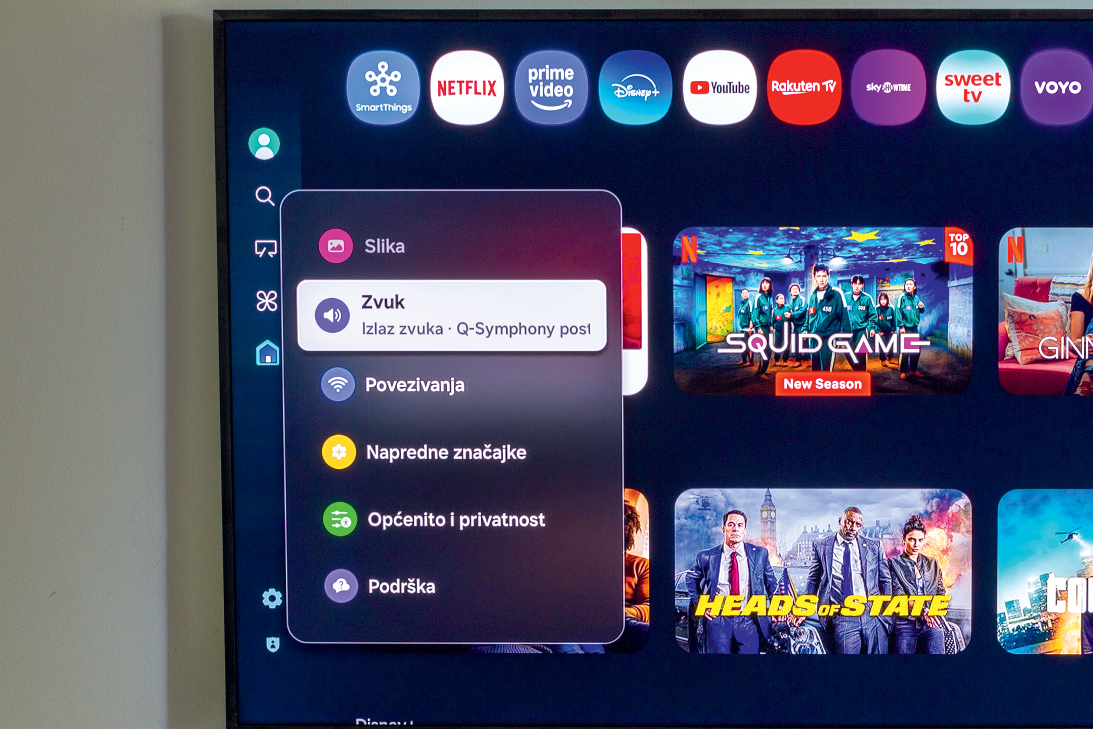 Kada pričamo o samom televizoru, nudi ogroman broj modernih funkcija za prikaz svih vrsta sadržaja. U tome mu pomaže najnoviji NQ4 AI Gen 2 procesor koji, osim vrlo brzog i responzivnog rada, sada podržava i AI funkcije. Primarno AI sada unaprjeđuje standardan rad poput upscalinga sadržaja na 4K, omogućuje generiranje pozadinskih slika na temelju raznih upita, a optimizira i audio iskustvo. Televizor koristi 2.0.2 audio sustav te uz glavna dva zvučnika, ima ugrađene i dodatne za dobivanje surround efekta. Svakako savjetujemo i da razmislite o soundbar sustavu, gdje sa Samsung verzijama TV zvučnici mogu raditi u skladu za dobivanje iznimnog audio surround iskustva. Odlična opcija AI sustava je i automatski odabir optimalnih postavki za svaki sadržaj koji gledate, pa više ne morate kopati po opcijama televizora svaki puta kada želite pustiti film ili pogledati tekmu. Tu su i neke dodatne AI funkcije, no nisu sve dostupne s obzirom na jezik i lokaciju, pa se nadamo ažuriranju s obzirom da Samsung jamči do sedam godina ažuriranja za njihov novi televizor.