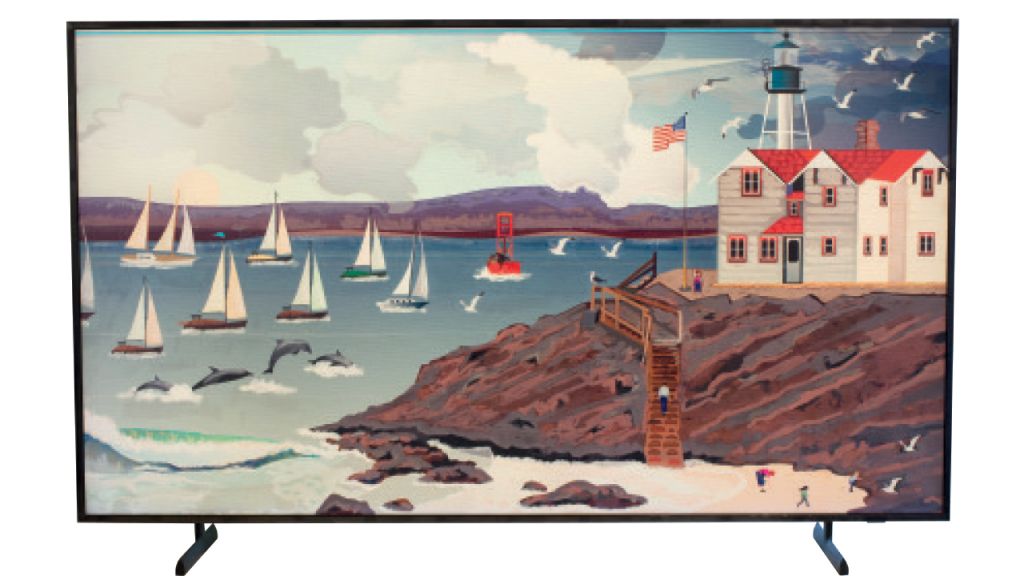 Dok televizor svakako puno ulaže u dizajn, tu je i tehnološka strana koja omogućuje uživanje u samom sadržaju koji se prikazuje. Standardni The Frame model ove godine dolazi s nekoliko ključnih poboljšanja, a za prikaz samog sadržaja koristi se Samsung Quantum Dot tehnologija, koja je postala de facto standard kvalitetnog prikaza bilo kakvog multimedijskog sadržaja. QLED VA panel nudi odličan kontrast prikaza, odličan i za HDR sadržaj, iako ne dobivate lokalno zatamnjivanje pozadinskog osvjetljenja. Ovaj model više ne koristi samo rubno osvjetljenje panela, već je osvjetljenje uniformno, a koristi se Dual LED tehnologija, ključan detalj za dobivanje efekta stvarne slike. Naime, svi znamo da standardan prikaz sadržaja na televiziji prikazuje dosta hladne bijele boje, kako bi se dobio maksimalan efekt svjetline. Televizori nude eliminiranje dijela plavog svjetla za dobivanje toplijih boja, no na standardnom televizoru to znači i oslabljivanje ukupne snage panela. Dual LED tehnologija ima upravo to, pozadinsko osvjetljenje različite „topline“, kako bi i topliji prikaz dobio punu svjetlinu. No, na ovom televizoru ne radi se samo o prikazu filmova i serija, već ova tehnologija radi zajedno sa senzorima na televizoru. The Frame ima senzor ambijentalnog svjetla te na temelju prostorije prilagođava toplinu prikaza i snagu, kako bi se u prostor uklopio poput slike, pa se tako izbjegava u toplo osvjetljenoj sobi hladno bijeli prikaz na televizoru. Tako sav sadržaj na televizoru izgleda upravo kao da je osvjetljen samom prostorijom. Kada The Frame isključite, on se ne gasi, nego se pali njegov Ambinet Mode, gdje će na televizoru biti prikazana jedna od ogromnog broja umjetnina, a imate opciju rada senzora pokreta kako bi se televizor ugasio dok nema nikoga u prostoru. Usluga prikaza umjetnina vrti tridesetak besplatnih slika svakog mjeseca, s oko 300 stalnih slika. Uz mjesečnu ili godišnju pretplatu dobivate pristup preko 3.000 umjetnina unutar Samsung Art Store sustava.
