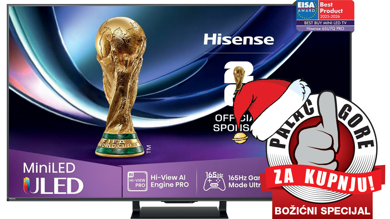 Za: Iako je 55-inčni televizor i dalje svojevrsni standard, nešto veći 65-inčni modeli sve više ulaze u domove tech entuzijasta. Pogotovo kad pričamo o atraktivnim ponudama kao što je ovaj Hisense 65U7Q Pro MiniLED televizor koji će se pobrinuti da svi ukućani budu sretni i zadovoljni sadržajem koji konzumiraju – bez obzira pričamo li o filmovima, serijama, igrama, sportu ili glazbi.