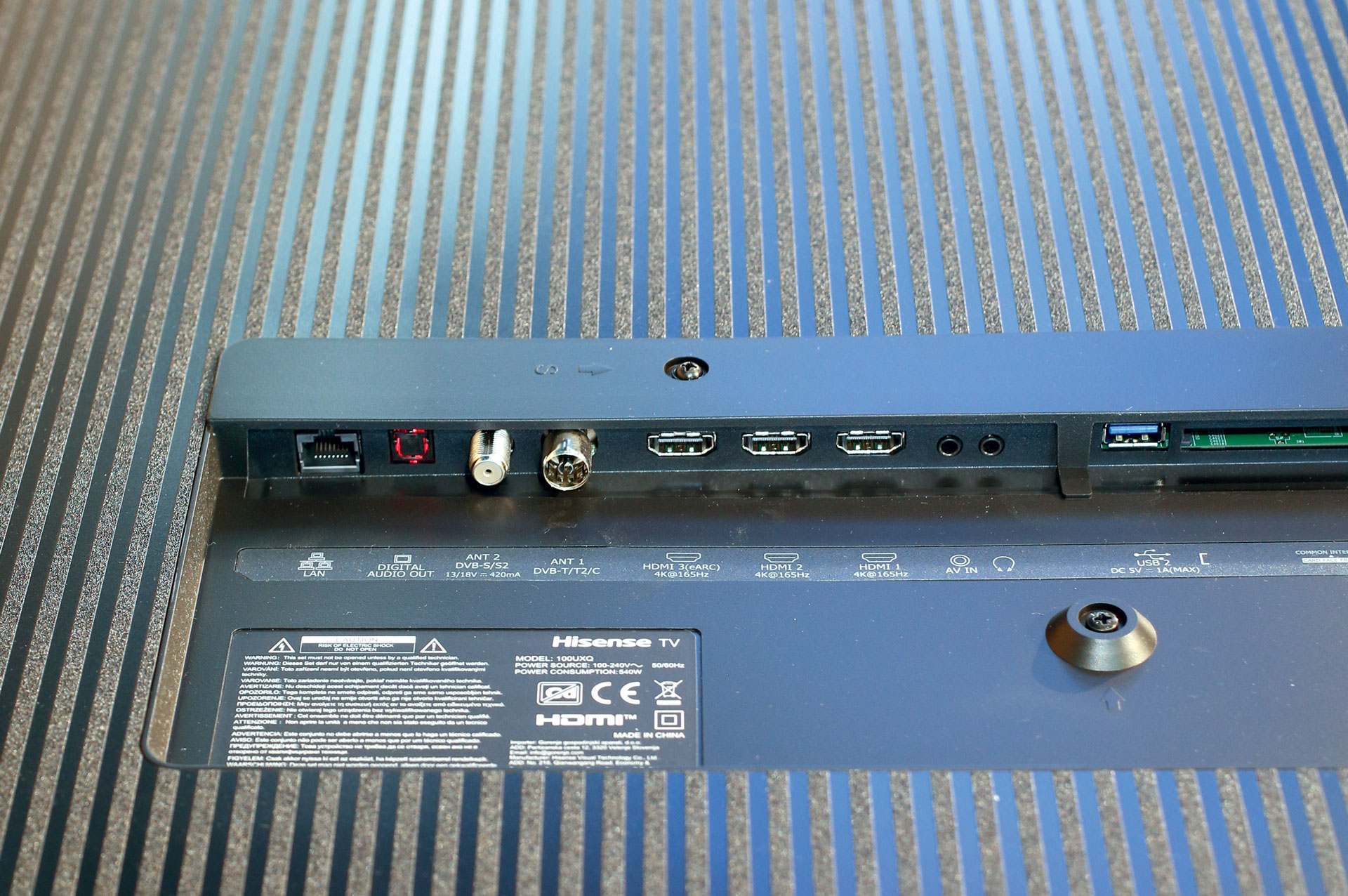 Kao prvo, riječ je o apsolutnom flagship uređaju koji Hisense trenutno nudi, pa je i cijena adekvatna takvom pozicioniranju. Svaki detalj televizora dizajniran je da izgleda premium, te nudi i adekvatno iskustvo kod uživanja u multimediji. Prva stvar koju ćete primijetiti je da televizor ima dubinu od malo ispod četiri centimetra, što ga čini nešto debljim od OLED modela. No, zato ima dovoljno prostora za implementaciju boljeg ozvučenja, koje dolazi u 6.2.2 kombinaciji, sa šest zvučnika za široko stereo iskustvo, dva zvučnika na vrhu za dobivanje prostornosti putem Dolby Atmos sustava, te su još sa stražnje strane ugrađena dva dubokotonca za izražajnije specijalne efekte. To je i razlog perforiranom dizajnu obruba televizora, koji može ispuniti sobu zvukom ukupne snage 110 W, sa potpisom Devialet optimizacije zvuka. Ovo iskustvo se lako može dodatno poboljšati sa Hisense soundbar sustavom, na koji se televizor može i bežično povezati, a s kojim može raditi u tandemu za punu iskoristivost svih mogućnosti. Kada smo već kod stražnje strane televizora, lako je vidjeti da je dizajnirana potpuno ravno, što znači da se televizor lako montira na zid da bude „priljubljen“ poput slike, uz adekvatan nosač. Imajte na umu da sa svojih 100” i bogatom opremom, ovaj televizor ima gotovo 75 kilograma.
