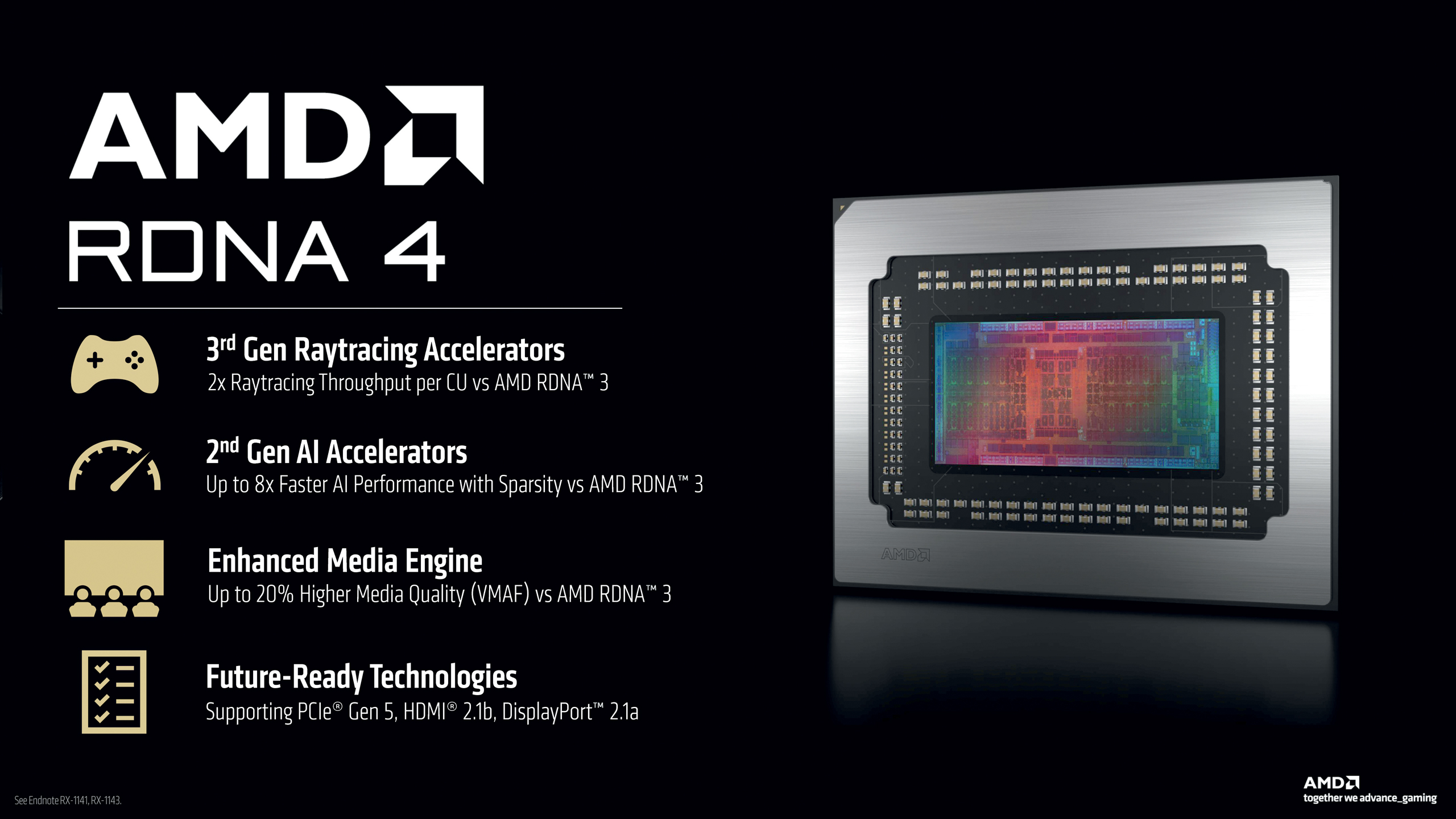 AMD se posebno s RDNA 4 arhitekturom fokusirao na ray tracing performanse i AI mogućnosti, s obzirom da su upravo to bili ključni nedostaci prethodne generacije AMD-ovih kartica u odnosu na Nvidijine.