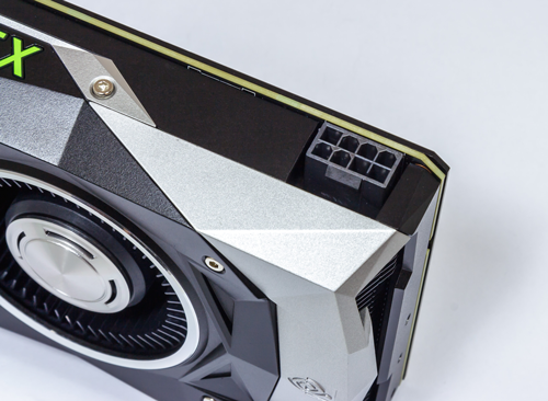 Masivna metalna crna ploča sa stražnje strane i dalje je prisutna te pokriva karticu u njezinoj cijeloj duljini, a pritom ju čini oku privlačnijom i rigidnijom, ali i pomaže u disipaciji topline. Tu je i zeleno osvijetljeni GeForce logo koji se može kontrolirati putem GeForce Expirience softvera. Obzirm na relativno maleni TDP, nVidija je odlučila postaviti samo jedan 8-pinski PCI-express power port, što svakako pozdravljamo i bit će se lakše organizirati oko cable managementa. A sada malo marketinških spinova. nVidijin referenti dizajn je termin koji je od sad big no-no u njihovom rječniku; već su ovu generaciju kartica referentnog dizajna prozvali “Founders Edition”. Pored dodjele tog novog imena nVidijina je također uvjerena da je njihovo rješenje bolje što se tiče dizajna PCB-a i okolnih komponenti, poput jedinice napajanja koja se sada sastoji od šest faza, zbog čega su cijenu Founders Edition verzije kartice postavili na nešto viših $699 MSRP-a, a što je zapravo $100 niže od preporučenog MSRP-a za nereferentne dizajne njihovih board partnera. nVidijina ovo povećanje cijene također opravdava činjenicom da ne žele svojim partnerima oduzimati udio u tržištu, zbog čega su njihov MSRP postavili na tih nižih 599$. Ovo je sad zapravo obrnuta situacija od one koju smo prije imali, a to je da su referenti dizajni grafičkih kartica bili prilično jeftiniji od nereferentnih, a obično su kupovali korisnici koji su planirali ugraditi vodeno hlađenje na njih ili oni kojima je blow-off turbinski still hladnjaka odgovarao zbog odvoda topline, ali u načelu gledano to je bio vrlo mali broj kupaca, pogotovo kod high-end modela grafičkih kartica.