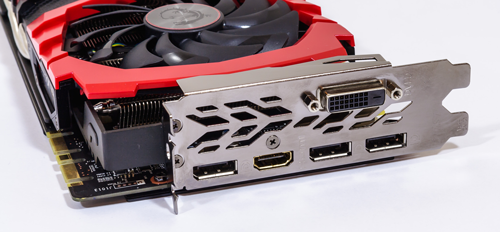 Kao što smo i rekli, za ovu generaciju grafičkih kartica opremljena je novom GDDR5X video memorijom. U suštini, riječ je o unaprijeđenoj GDDR5 memoriji, a za razliku od nje, GDDR5X donosi veću propusnost, energetsku efikasnost (trenutni napon je 1,35 V, što je u grubo 40% manje nego do sada) i gustoću memorijskih čipova, zbog čega nas je video buffer GeForce GTX 1080 kartica dočekao na visokih 8 GB, što će biti i više nego dovoljno da pokrije zahtjeve 4K, pa i onih još većih rezolucija. Radni takt memorije iznosi 1250 MHz, odnosno 10 GHz efektivno, sabirnica je ostala široka 256-bit, a ukupna propusnost iznosi 320 GB/s. S druge strane radni takt GPU-a povećan je na visokih 1607, odnosno 1733 MHz u sklopu Turbo Boosta, što je povećalo computing snagu kartice na 8873 GigaFLOPS-a, a to je gotovo 80% više u odnosu na GTX 980, uz svega 15 W većeg TDP-a (ukupno 180 W). U najmanju ruku ovo je impresivna brojka. Ovaj radni takt zahvaljujući vrlo agresivnoj trećoj generaciji nVidjine GPU Boost tehnologije bez problema penje na malo ispod 2.0 GHz, bez potrebe da sami morate išta namještati u sklopu overclockerskih programa poput MSI Afterburnera. Daljnjim ručnim overclockingom nećete postići puno više, otprilike između 2050 – 2100 MHz, zbog čega zapravo i nema nekog smisla overclockirati. Kao i kod prethodnih generacija, GeForce GTX 1080 ima pet video izlaza, a neki od njih su novih revizija i standarda pa tako sada imamo tri DisplayPort 1.4 ready porta, jedan HDMI 2.0b i DVI-D port.