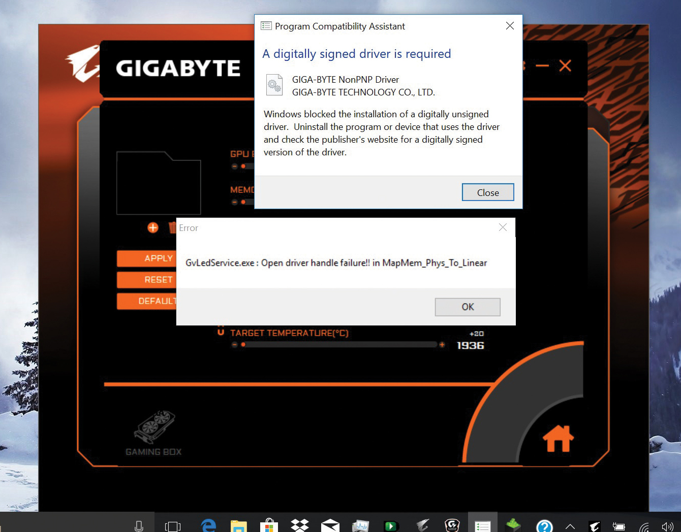 Što se Aorus Graphics Enginea tiče, Gigabyte nije odradio baš sjajan posao jer masa korisnika javlja kako se softver ne želi pokrenuti ili se ruši, a služi za postavljanje overclock moda te setup LED osvjetljenja koje može treperiti ili biti u nekoj od RGB boja, no može i pokazivati stanje ventilatora, zauzeća GPU-a te temperature. Ukoliko vam se ne pokrene prilikom starta Windowsa, morat ćete ga pokrenuti ručno, u suprotnom ništa od overclock moda, a performanse će zaostajati.