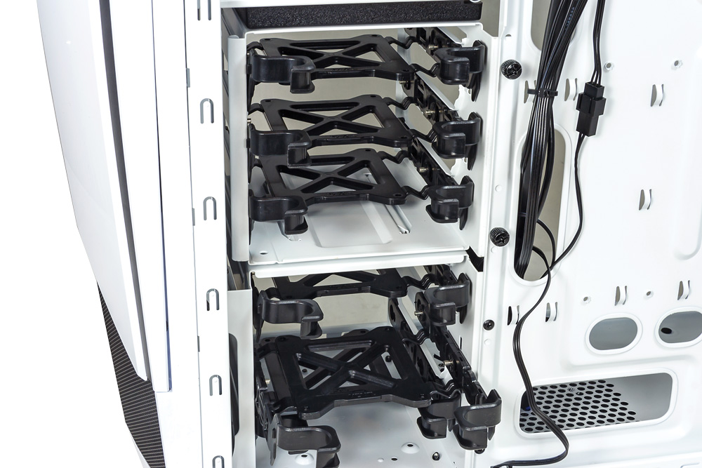 Kavezi za diskove podržavaju instalaciju bez potrebe za alatom, a inicijalno su postavljeni na način da im se pristupa s desne strane. No, ladicu lako možete preseliti na lijevu stranu.