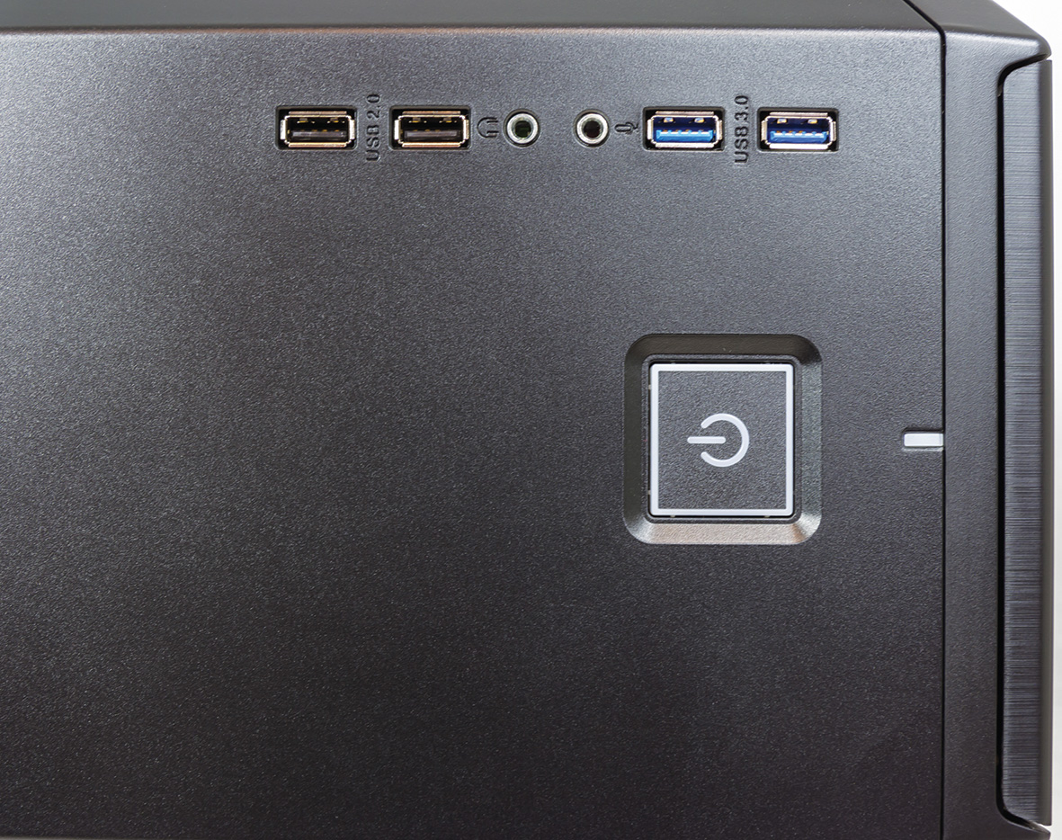 S gornje strane kućišta naći ćete veliki prekidač za pokretanje, bez posebnog prekidača za resetiranje, dva USB 2.0 i dva USB 3.0 utora, te priključke za mikrofon i slušalice.