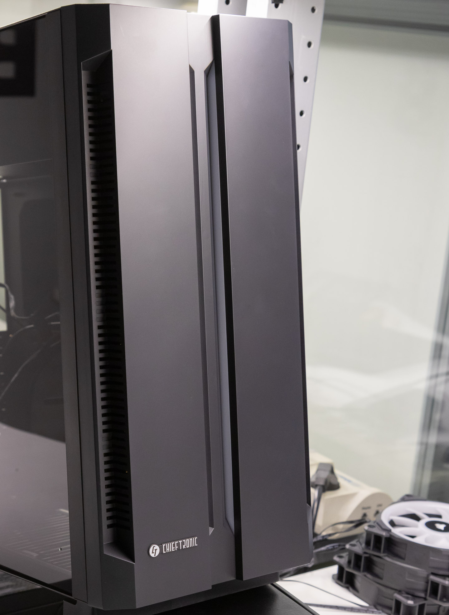 Prvo što svakoga treba interesirati su prednji I/O portovi, kao i prekidači. Chieftronic G1 tako ima veći okrugli gumb za paljenje i gašenje računala koji je osvijetljen sa vanjskim LED prstenom.