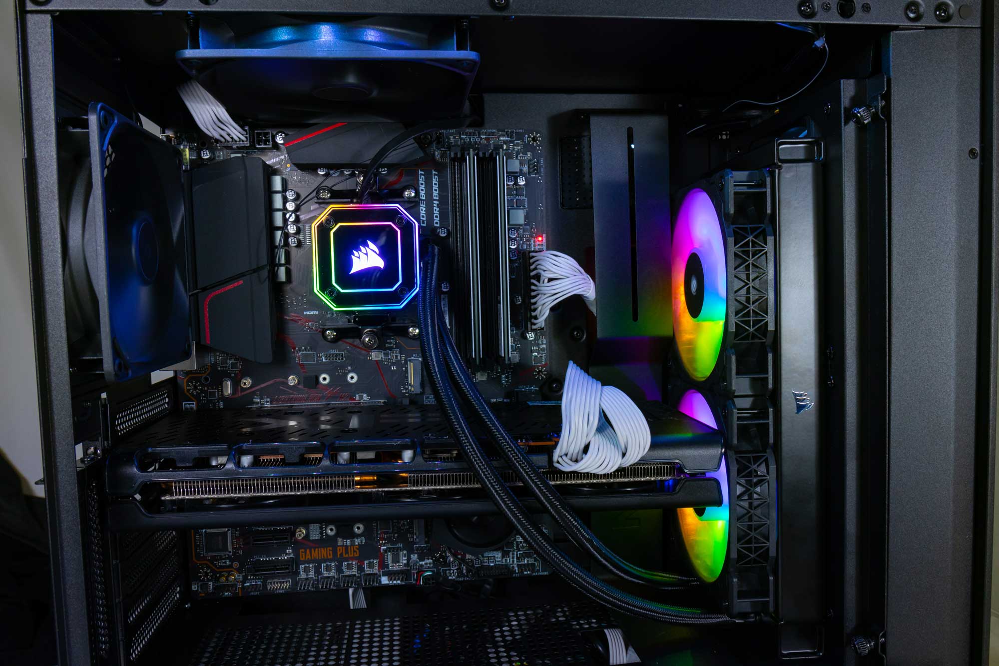 Donji odjeljak za napajanje ujedno je i linija gdje se staklene stranice pretvaraju u metalne, no NZXT se potrudio da prijelaz bude vrlo moderan sa minimalnim razmacima. Stražnja strana odjeljka tako ima prostora za napajanje, kao i dovoljno mjesta da na dno nagurate sav višak kablova. Straga imamo kavez u koji stanu do tri 3,5” ili 2,5” diska, a iza matične ploče mogu se postaviti još dva 2,5” diska. Na vrhu ove strane nailazimo na RGB kontroler, koji čini i dobar dio cijene ovoga kućišta. On kontrolira snagu ventilatora kao i RGB efekte, a osim prednjih ventilatora kućište ima i RGB traku po dužini, odmah iznad stakla na lijevoj strani, koja osvjetljava komponente sustava. Ono što ćete brzo primijetiti svakako je vrhunski riješen prostor za cable management. Osim plastičnih izbočina za vođenje kablova imate i veliki okomiti izrez sa odmaknutim pokrovom za dodatan cable management, kako bi sprijeda sve izgledalo uredno. Spomenimo samo i veliki minus ovoga kućišta, a to je protok zraka. U tom pogledu ovo kućište nikako nije orijentirano na performanse te će imati najlošije performanse u svakom buildu jer dva prednja ventilatora mogu vući zrak samo sa desnog prednjeg ruba koji je filtriran, no nalazi se odmah pored ventilatora. Tako ispada da se prednji ventilatori konstantno bore s manjkom zraka te moraju raditi jače i za prosječno hlađenje.