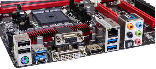 Naravno, shodno tome formatu prostor na ploči nešto je ograničeniji, ali to nije spriječilo ASRock da ovaj model natrpa raznoraznim dodacima i mogućnostima koje bez problema posrame i veću braću. Tako je primjerice ovaj model dobio M.2 slot koji je prava rijetkost na AMD-ovim pločama, a tu je i USB 3.1 podrška zahvaljujući third-party kontroleru koji je postavljen na nju. Stražnja strana osim njih otkriva i dva USB 3.0 te dva USB 2.0 porta, combo PS/2 port, Gigabitni LAN priključak, tri video izlaza (HDMI, DVI-D i D-Sub) te kombinaciju digitalnih i analognih audio ulaza / izlaza. Isti su bazirani na ni manje ni više nego Realtekovoj ALC1150 zvučnoj kartici koja se također rijetko može vidjeti u sklopu modela matičnih ploča ovako niske cijene. PCI-e layout je malo neklasičan kao kod „normalnih“ matičnih ploča A88X čipseta, dva PCI-express 3.0 / 2.0 slota x16 duljine koji rade na x8 / x4 u CrossFireX konfiguraciji, nažalost bez podrške za SLI te pored njih jedan PCI-express 2.0 x1 i jedan klasični PCI slot.