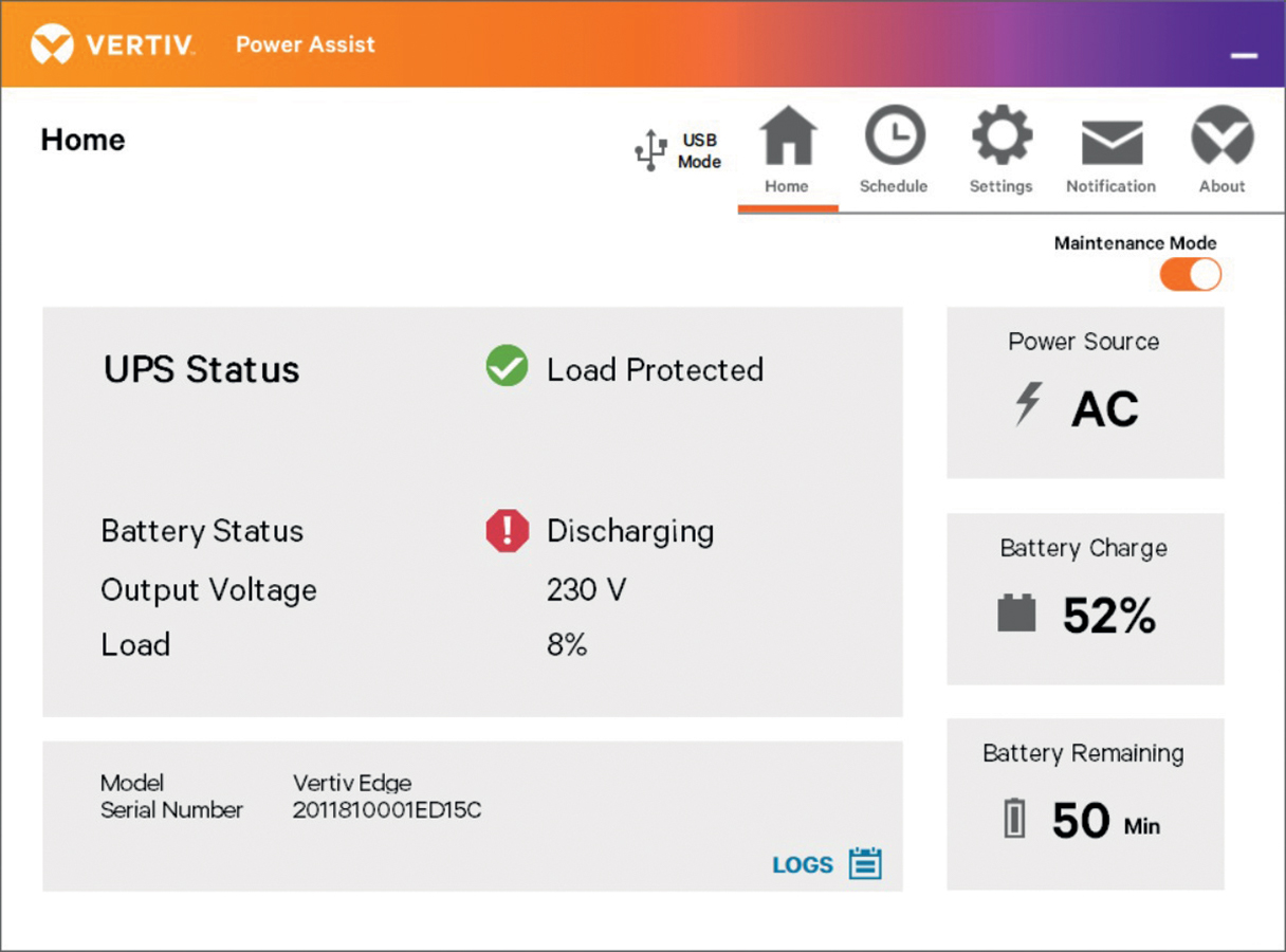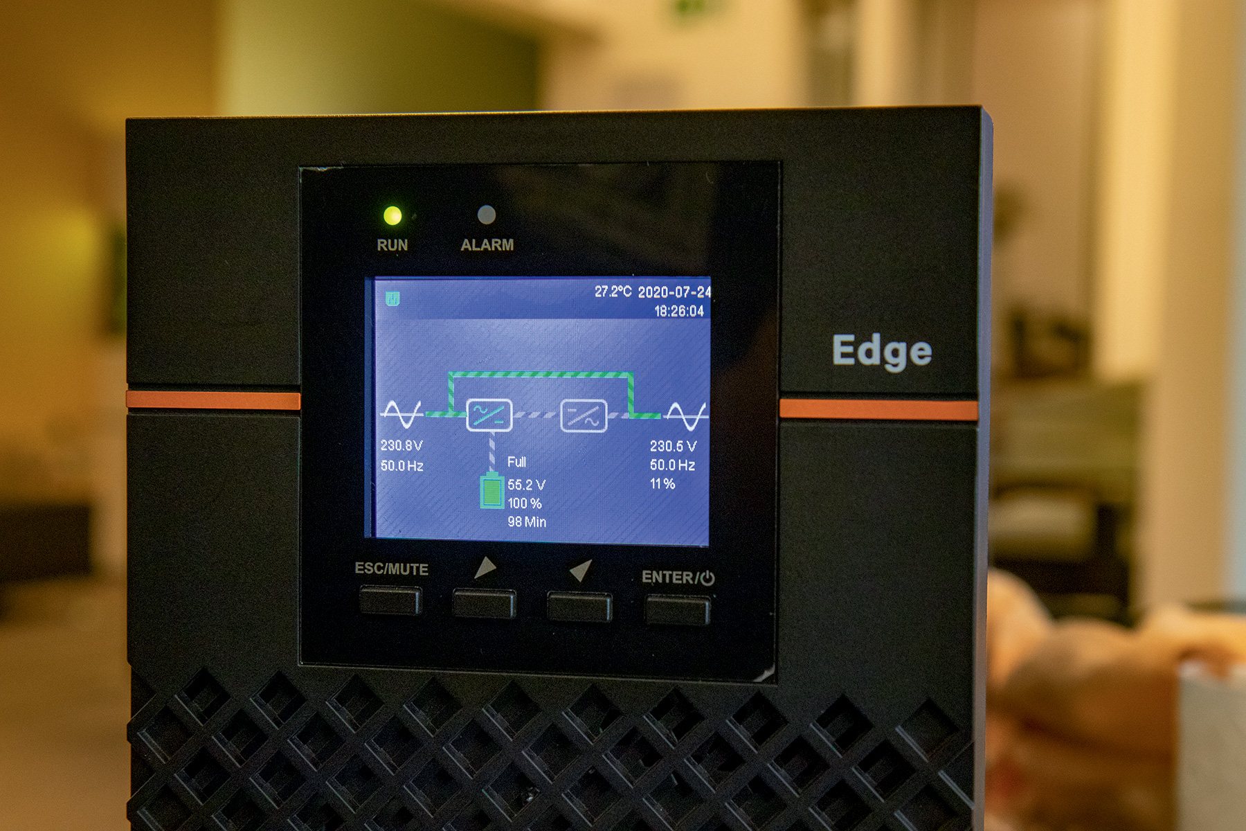 Vertiv Edge-1500IMT UPS se kontrolira putem računala na koje je spojen USB konekcijom, ili putem zaslona u boji s prednje strane. Na samom UPS-u možete saznati detaljne informacije o el. energiji na mreži, kao i o energiji koja se šalje prema potrošaču. UPS će vam u svakom trenutku izbaciti i potrošnju povezanih uređaja sa postotkom snage koju može ispostaviti, kao i projicirano vrijeme rada. Tako da ukoliko uređaji konstantno troše 40% ukupne snage UPS-a, možete znati koliko dugo će ih moći napajati u slučaju nestanka energije iz mreže.