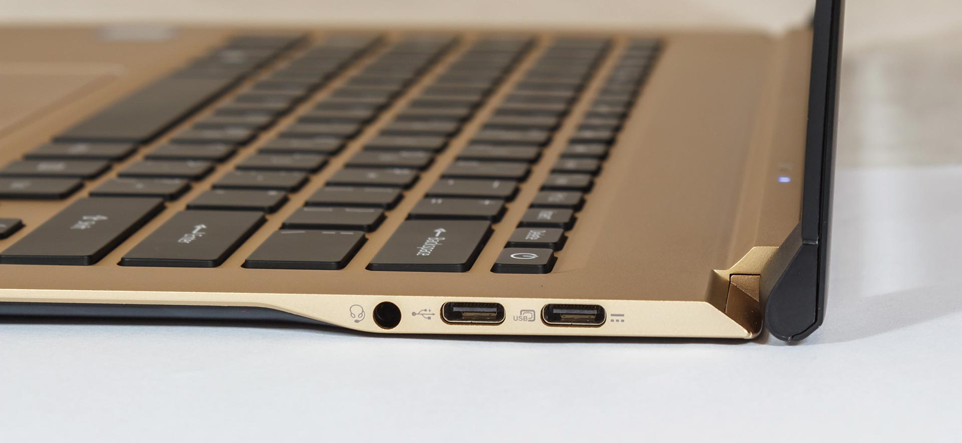 S vanjskih strana, S13 ultra se doima kao klasičan ultrabook više klase i crnog dizajna, s veoma mekanom vanjštinom, koja je magnet za zamašćivanje i otiske prstiju. Međutim, kada otvorimo laptop, oči nam miluje neočekivano otmjena zlatna boja koje se ne bi posramio niti Apple iPhone novije generacije u rukama neke starlete. Poweruser u nama se odmah oduševio i ogromnim trackpadom koji je možda i najveći s kojim smo se ikad susreli. Pokriva više od polovice površine ispod tipkovnice, a po preciznosti je čak bolji od onoga što Acer nudi u ostalim serijama. Tipkovnica je pak gotovo pa obrnuto proporcionalna te su tipke neočekivano malene, čak i za jedan ultrabook.