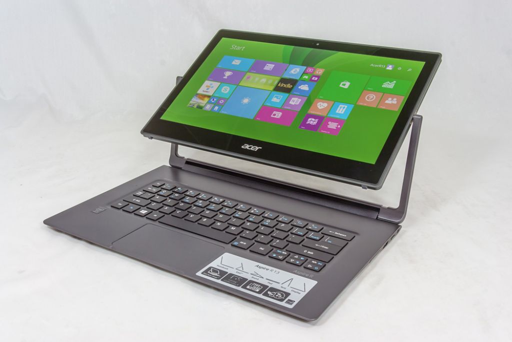 I dok je V13 zapravo jedan sasvim prosječan primjerak 13,3” ultrabook prijenosnika, R13 je totalno druga dimenzija. Aspire R13 je prije svega 2-u-1 uređaj koji se svojim jedinstvenim šarkama i okvirom može okrenuti za 180 stupnjeva i poklopiti tako da se od njega dobije tablet. Dosta slično Dell XPS 12 Ultrabook Convertible uređaju. Kao što možete vidjeti na slikama, cijela stvar funkcionira vrlo dobro te je uz to vrlo čvrsta. Nemate osjećaj kao da ćete nešto potrgati dok se prebacujete iz jednog načina rada u drugi. Baš kao i V13, i ovaj model posjeduje Core i7 5500U, no uz nešto manje RAM-a i 256 GB SSD-a. Naravno, konfiguracije mogu biti svakakve pa pričekajte dok ne stignu u naše trgovine da vidite koje će biti finalne specifikacije za oba modela.