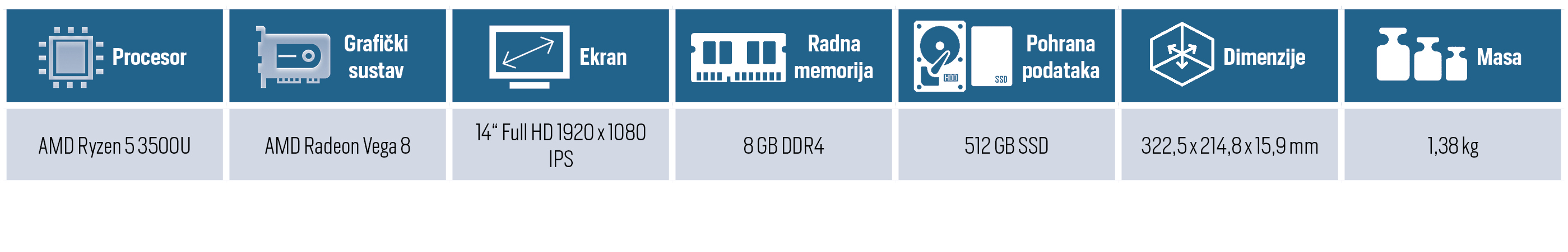 Hardverski se MateBook D temelji na nešto starijoj AMD-ovoj mobilnoj platformi koja uključuje procesor Ryzen 5 3500U. Testna konfiguracija ovog laptopa uključivala je također 8 GB DDR4 memorije i SSD raskošnijeg kapaciteta: 512 GB. Ovakva hardverska osnova omogućuje vrlo pristojne performanse, premda će vam u pravilu noviji Ryzeni serije 4000 ponuditi nešto više. Međutim, s obzirom na ukupnu cijenu i druga svojstva Huaweijevog MateBook D, nećemo se previše buniti.