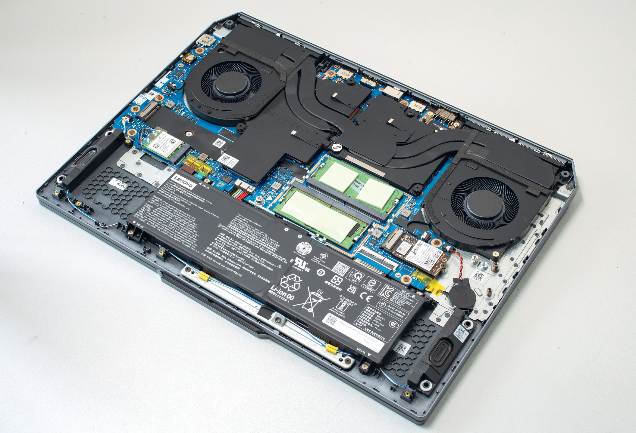 Osim ugrađenog SSD diska od 512 GB pohrane, kojeg također možete zamijeniti, laptop ima utore za još dva diska koje možete nadodati za više ukupne memorije. Vidimo da je baterija manja od ukupnog kapaciteta kućišta, no dovoljna je za rad odvojen od napajanja, ako nećete koristiti dediciranu, već integriranu grafiku za zadatke koji ne uključuju gaming. Malo ćete se trebati igrati s postavkama rada za dobivanje baterije koja može izdržati radni dan, no gaming na bateriji trajat će svega oko 45 minuta.