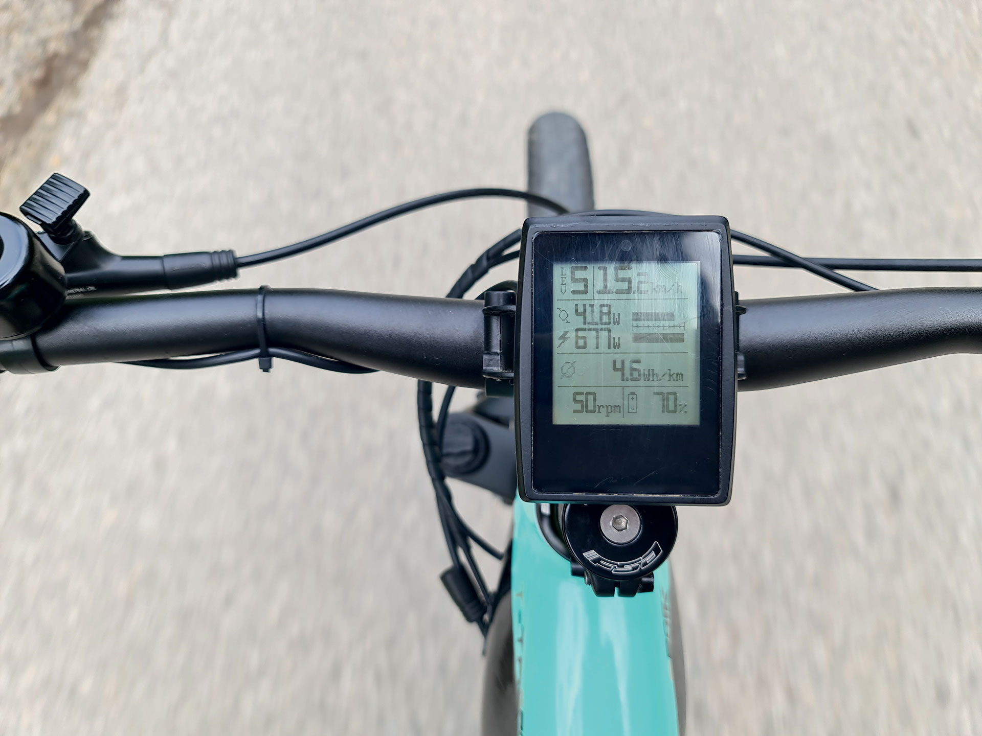 Sustav se pali s gumbom na samoj bateriji koja odmah ima i indikator napunjenosti. Jednom kada se pokrene, putno računalo će vam dati osnovne podatke o stanju baterije i očekivani domet koji će se naravno mijenjati kako se vozite. Osim same mase vozača, još veći utjecaj na domet ima i sam teren, tako da primjerice po ravnome motor može pomagati dobrih 60 kilometara, no jednom kada smo bili blizu vrha Kustošijanske, procjena je bila nekih 15 kilometara, ali to se odnosi na 15 kilometara uspona na kojem se trenutno nalazite. Jednom kada se cesta izravna, procijenjena kilometraža će početi rasti. Putno računalo je imalo zanimljive podatke o snazi i tako smo saznali da za penjanje od 10° trebamo nekih 900 W snage. Motor može pomoći s do 750 W u kraćim intervalima, s prosjekom od oko 500 W za spomenuti uspon, dok smo mi morali dati ostatak. Ovaj sustav neće preuzeti cijelu snagu na sebe bez obzira na teren, već uvijek olakšava rad vama. Tako po ravnome sami trošimo oko 200 W za održavanje 26 km/h, a motor daje oko 50 – 150 W kako bi se održala brzina. Cijelu turu od nekih 37 km odvrtili smo s 13 % preostale baterije. Baterija se lagano skida ako imate ključ te ju možete puniti s njihovim punjačem, no punjenje traje dobrih 5-6 sati. Motor ćete definitivno čuti za vrijeme uspona, a isključuje se prilikom dostizanja 25 km/h.