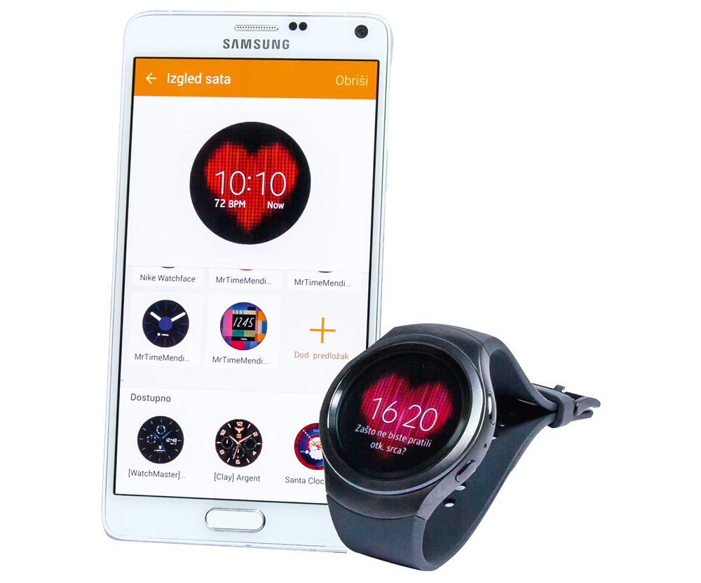 Upravo taj detalj nam se najviše sviđa na Gearu S2 jer je vrlo intuitivno vrtjeti prsten koji okružuje OLED ekran dijagonale 1,2 inča, uz rezoluciju 360 x 360 točkica. Želimo li isključiti osvjetljenje sata, dovoljno je ekran samo prekriti dlanom. Na satu je moguće pisati tekst, odgovoriti glasom ili putem predložaka.