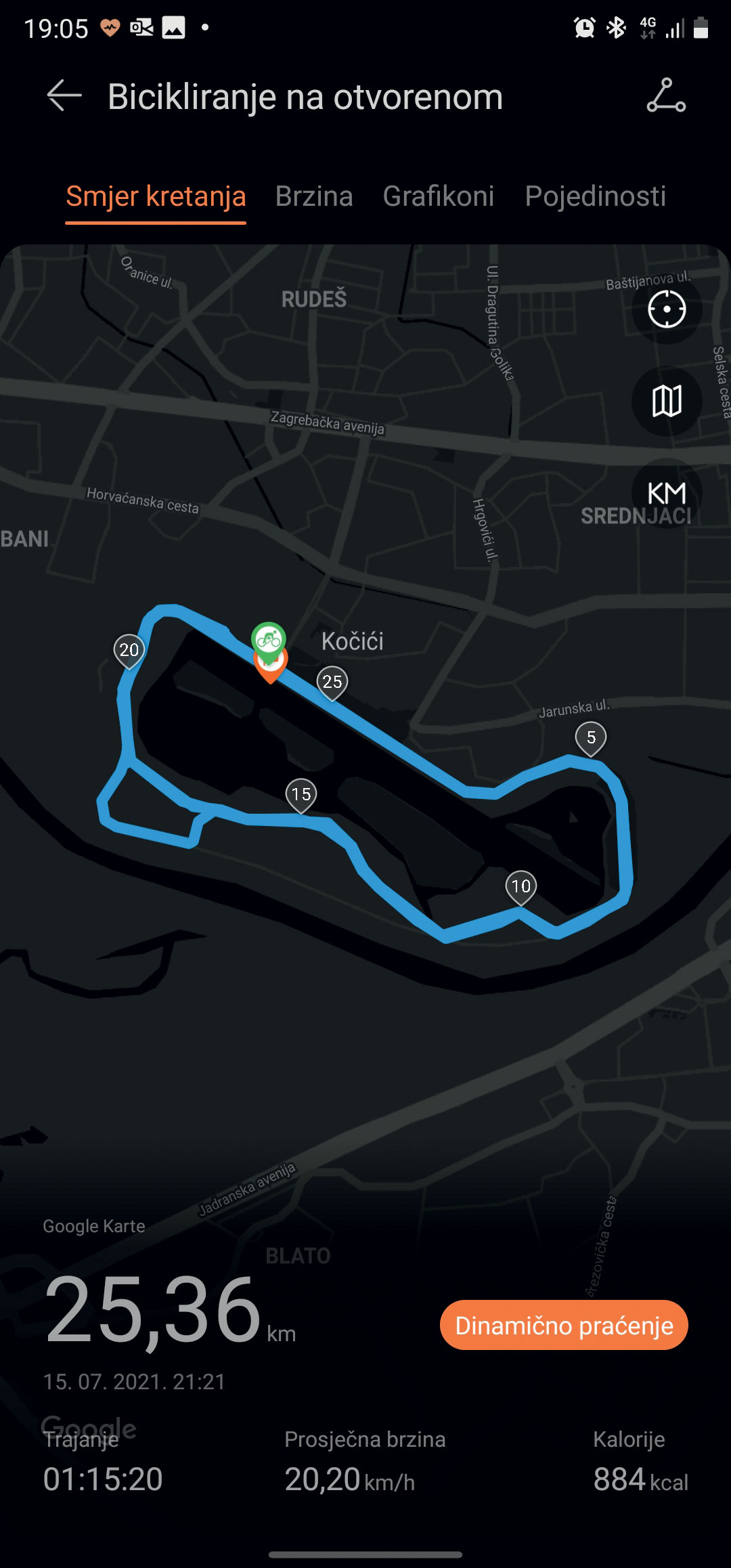 Prijeđena ruta: se može prikazati i u obliku video animacije koja će vam pokazati kako ste se kretali na kojem dijelu staze