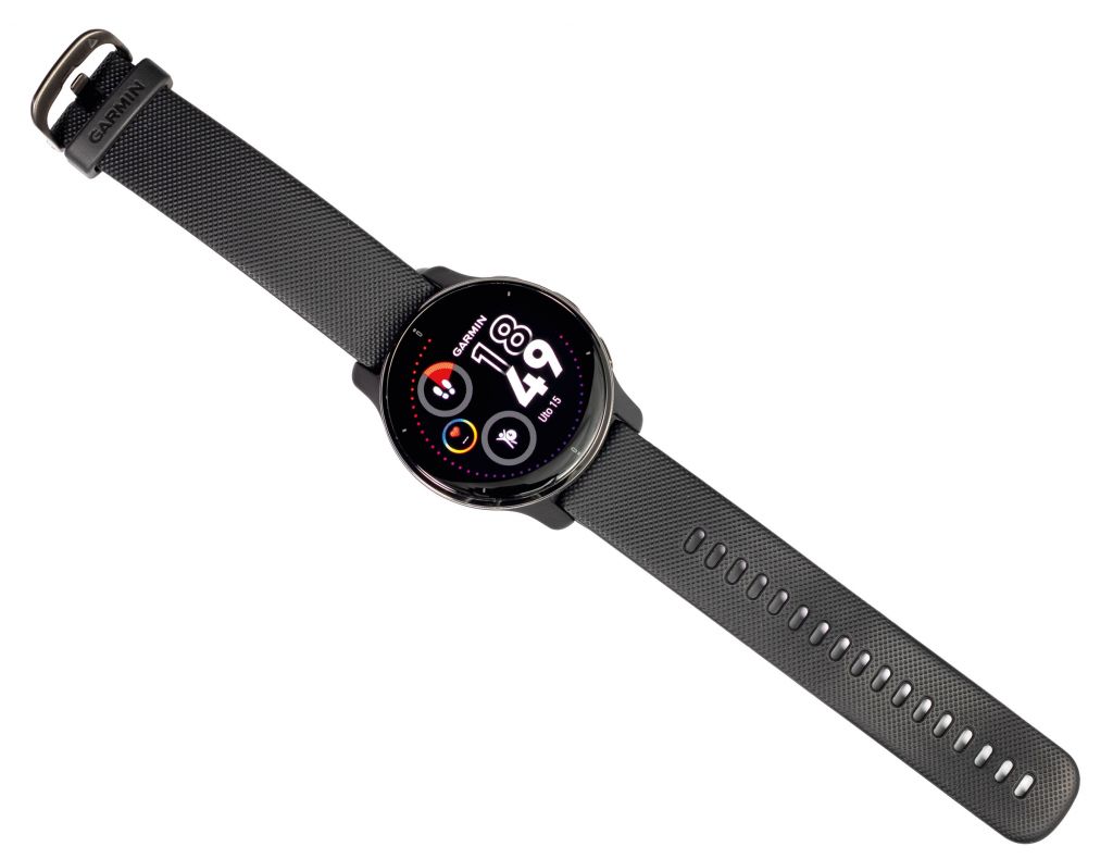 Sat u Venu 2 kategoriji dolazi s umjerenim dimenzijama te će pasati na velik broj zapešća iako se može uzeti samo u jednoj veličini. Dok je zaslon ostao isti kao na Venu 2 modelu, kućište se smanjilo na 43,6 × 43,6 × 12,6 mm, a s njime i Garminova projekcija trajanja baterije na do 9 dana s originalnih 11. Nakon što upalite always-on opciju, vrijeme trajanja pada na oko 2 dana korištenja. Sprijeda dakle imamo isti AMOLED zaslon od 1,3” dijagonale i 416 × 416 piksela, što mu daje vrlo oštru rezoluciju za prikaz detalja i grafikona, a i lica satova su oštra. Zaslon može postići vrlo visoku svjetlinu te će biti vidljiv u gotovo svim uvjetima, no na ljetnom ćete suncu ipak morati škiljiti da ga pročitate. Glavna nova fizička karakteristika sata nalazi se na desnom rubu, a riječ je o novom, trećem gumbu u sredini između dva postojeća. Olakšava navigaciju, možete ga programirati, a standardno služi za pristup najnovijim funkcijama Venu 2 Plus modela, a to su virtualni asistenti i ostale funkcije. Od ostalih fizičkih promjena, imamo nešto tanje metalne rubove oko zaslona, a kako smo već spomenuli, sada je i stražnja strana sata dobila metalnu površinu od nehrđajućeg čelika dok je ostatak sata kao i ostali u Garmin ponudi od polimera ojačanog vlaknima. Ima 51 gram težine tako da vjerojatno neće smetati sportašima u većini sportova. Sat koristi standardne 20-milimetarske remene koje je lagano skinuti tako da ih kasnije možete i mijenjati prema želji.