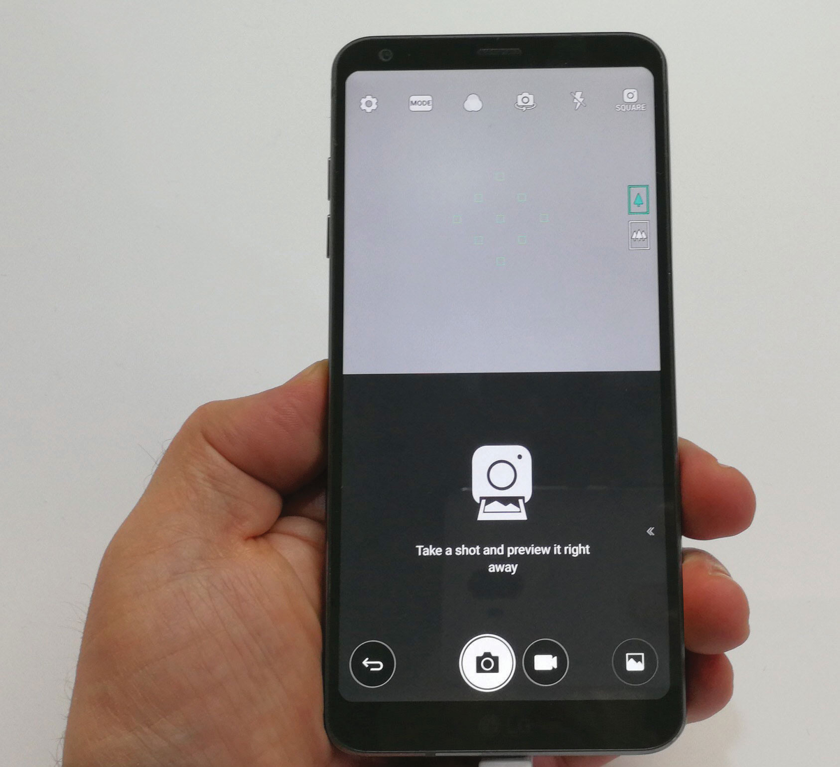Prva aplikacija koju smo testirali s ovim omjerom ekrana je kamera. LG G6 koristi dual kameru na stražnjoj strani kućišta pa se u pojedinim načinima kao što je „Grid shot“ na gornjem dijelu ekrana nalazi ono što vidimo kroz objektiv, a u donjem dijelu ekrana prethodno snimljena fotografija. Ili se u gornjem dijelu ekrana prikazuju preview sličice prethodnih snimaka. Ako se snima više fotografija, na donjoj polovici se nalaze četiri 1:1 fotke. Zgodno za korisnike koji koriste Instagram i Snapchat te odmah imaju spremnu fotku koja se dijeli pritiskom na opcije na dnu ekrana. Stražnja kamera inače koristi dva objektiva od 13 megapiksela, s tim da je jedan standardne širine te lovi sliku do 71 stupanj, a drugi je širokokutni s kutom do 125 stupnjeva. I prednja kamera je širokokutna pa lovi kut do 100 stupnjeva. Dobiveni rezultat je vrlo dobar do odličan, ovisno o uvjetima u kojima se snima.