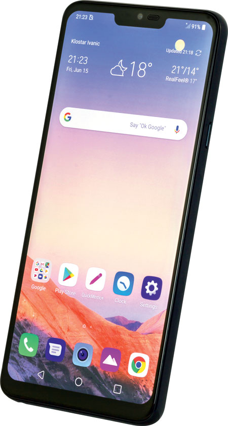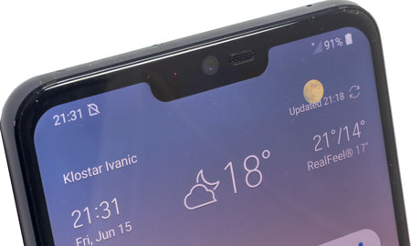 Ako vam ladica nedostaje, moguće ju je uključiti u postavkama. Zaslon nažalost nema P-OLED panel, već IPS LCD, što će odvratiti ljubitelje LG-jeve flagship zaslonske tehnologije. Iako su IPS zasloni često inferiorni, panel koji je LG ugradio u G7 vjerojatno je najbolji IPS panel koji smo dosad vidjeli na pametnim telefonima, uključujući i Sonyjeve uređaje, poznate upravo po tome. Zaslon je vrlo velik, ima dijagonalu od 6,1 inča, no same dimenzije nisu impresivne kao rezolucija od čak 3120 x 1440 piksela s vrlo visokom gustoćom piksela od 564 piksela po inču. Reprodukcija je boja odlična uz nešto zasićenije boje, no najimpresivnija je reprodukcija crne boje, koja bi mnoge mogla natjerati da pomisle da se radi o AMOLED zaslonu, čak i pri visokim razinama osvjetljenja. Osvjetljenje je vrlo dobro. Zahvaljujući „Boosted“ načinu rada, zaslon LG-ja G7 savršeno je čitljiv i na najjačem suncu. Za punjenje i prijenos podataka G7 koristi USB 3,1 Type-C konektor, dok za spajanje slušalica služi 3,5-milimetarski utor, koji je sve rjeđa pojava u novih uređaja. LG je u G7 također ugradio Quad DAC, odnosno napredni digitalno-analogni konverter s pojačalom koje može pogoniti slušalice s višom impedancijom u odnosu na većinu konkurentskih uređaja.