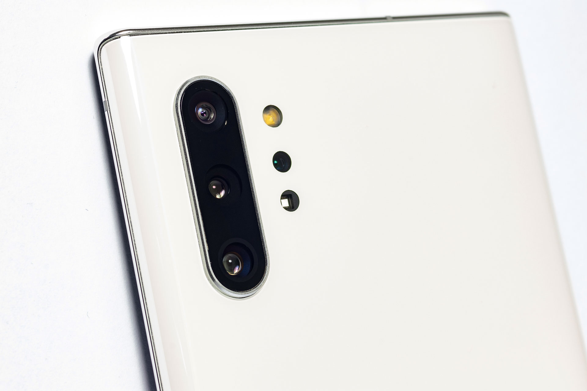 Note nam stiže s trostrukom stražnjom kamerom i to glavnom širokokutnom od 12 megapiksela, telefoto senzorom s također 12 megapiksela te 16 MP ultraširokom kamerom. Tu je i ToF 3D kamera za percepciju dubine. Note 10+ nudi bogat spektar načina snimanja, od automatskog, preko pro, do fokus uživo s bokeh opcijama, panorame, Instagram, hrana i noćni način. U pro načinu se gotovo sve opcije mogu prilagođavati uključujući i razliku između središnjeg i više fokusnih točaka.