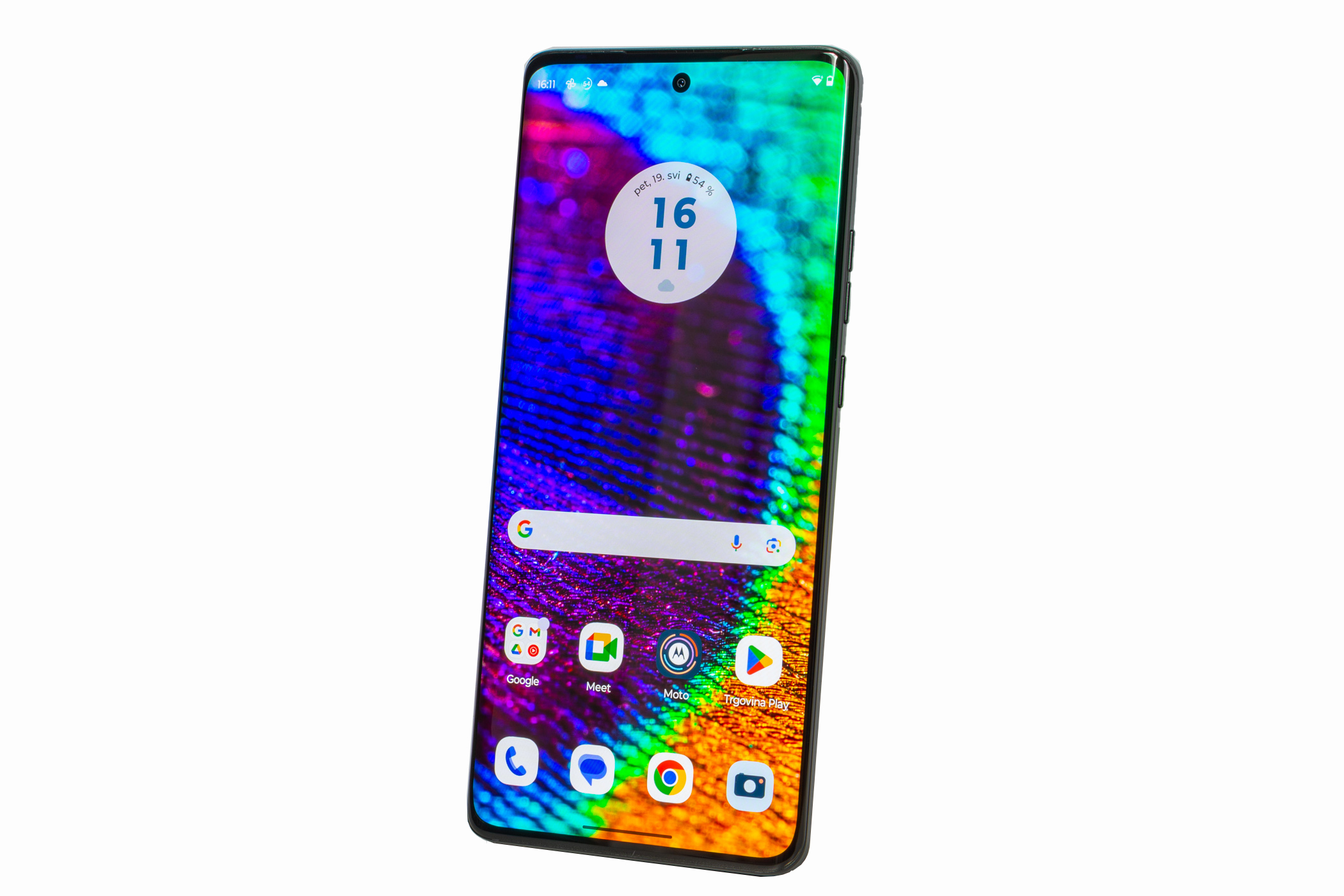 Motorola Edge 40 tako ima 6,55-inčnu dijagonalu zaslona koja s FullHD+ rezolucijom od 1080 x 2400 piksela u ruci djeluje dovoljno usko da ga lagano mogu primiti osobe svih veličina dlana. Dojmu lakoće dodaje i činjenica da mobitel ima svega 171 gram u verziji koju mi imamo na testu, no odabirom klasičnog modela, masa pada na 167 grama. Dodatnu masu imaju modeli sa stražnjom stranom od eko kože, dizajnerska odluka koja se vrlo rijetko nalazi na našem trđištu pa osigurava jedinstveni mobitel u ruci, dok se vani mogu naći i flagship modeli s ovakvim pristupom.
