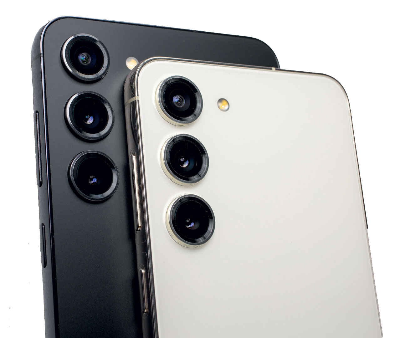 Krenimo od dizajna nove serije, no prvo trebamo pokriti jedinu razliku, a to su dimenzije. Osnovni S23 ima dijagonalu zaslona od 6,1” i masu od ukupno 168 grama. Veći S23+ ima dijagonalu od 6,6” s 196 grama. Oba dolaze s izborom boja između krem, zelene, ljubičaste ili crne. Mobiteli ove godine koriste Gorilla Glass Victus 2 zaštitna stakla s prednje i stražnje strane koja imaju poboljšanu otpornost na neravne tvrde površine pri padu, poput kamenja. Stražnja strana mobitela je matirana za ugodan osjećaj pod prstima, a smanjuje i vidljivost packi. Dok dizajnom sliče prošlogodišnjim modelima, razliku ove godine čini potpuno ravna stražnja i prednja površina stakla, poput iPhoneovog pristupa gdje su rubovi izraženiji. No, za razliku od iPhonea, Samsung je ipak odlučio rubove vrlo lagano zakriviti. Rub mobitela prati boju stražnje strane, no u poliranom stilu, s obzirom da se radi o aluminijskom okviru.