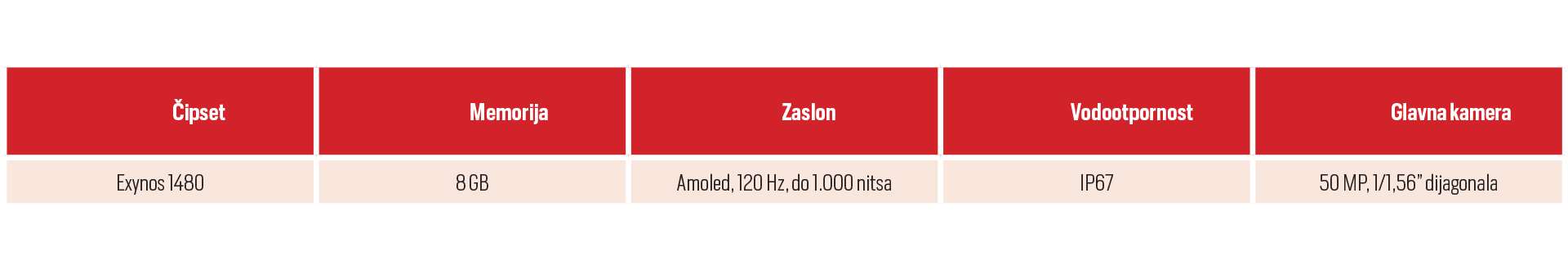Od ostatka hardvera, svakako spomenimo da bez obzira na konfiguraciju pohrane, dobivate 8 GB radne memorije, što bi trebalo biti dovoljno za rad na modernim aplikacijama za sljedećih nekoliko godina, s obzirom da Samsung nudi četiri godine velikih ažuriranja i još jednu dodatnu sa sigurnosnim zakrpama. Čipset koji koristi je Samsungov Exynos 1480 koji, osim bržih jezgri od starijeg Exynos 1380 čipseta, koristi i novu Xclipse 530 grafičku komponentu koja značajno podiže performanse u gaming i drugim zadacima, pa za takve korisnike preporučamo ovaj Samsungov model.