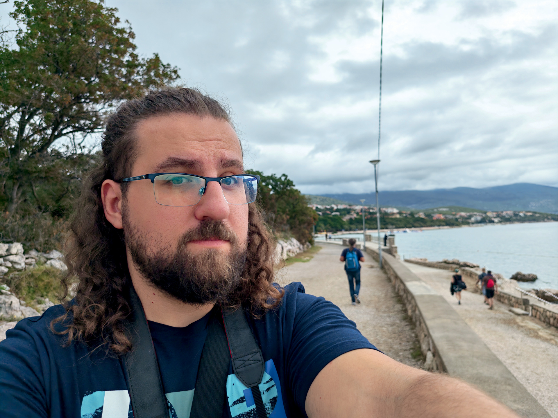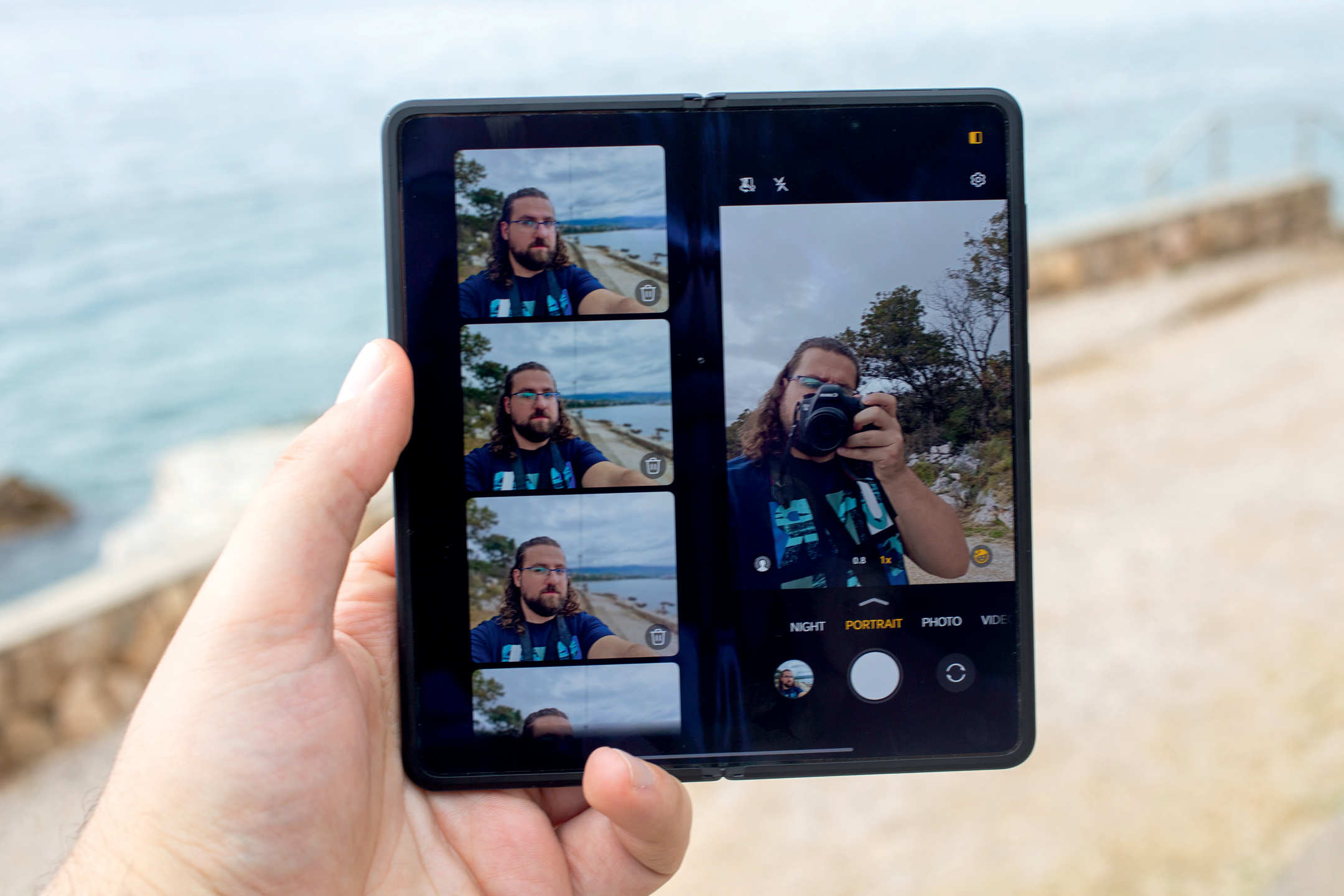 Na kraju, tu su i selfie kamere. Oba mobitela nude po dvije selfie kamere, jednu u unutarnjem zaslonu, a drugu na vrhu vanjskog zaslona. Oba također koriste iste senzore za unutarnju i vanjsku kameru, no naravno, razlikuju se u brendovima. Samsung je u Galaxy Fold7 stavio dva Sony IMX 374 senzora od 10 megapiksela, no na senzor u unutarnjoj kameri (veći zaslon) koristi objektiv sa malo širim pogledom. Honor Magic V5 koristi 20 megapikselne senzore sa jednakim specifikacijama vani i unutra. Isprobali smo selfije u standardnom i portretnom načinu, sa standardnim postavkama kakve su kada mobitel postavite. Samsung se pokazao oštrijim unatoč slici s manjom rezolucijom, koristeći solidnu obradu s oštrim, ali ne pretjeranim rezultatima. S druge strane, pozadinsko zamućivanje kod portretnog slikanja je uvelike pretjerano, iako ga možemo kasnije prilagoditi u editoru.