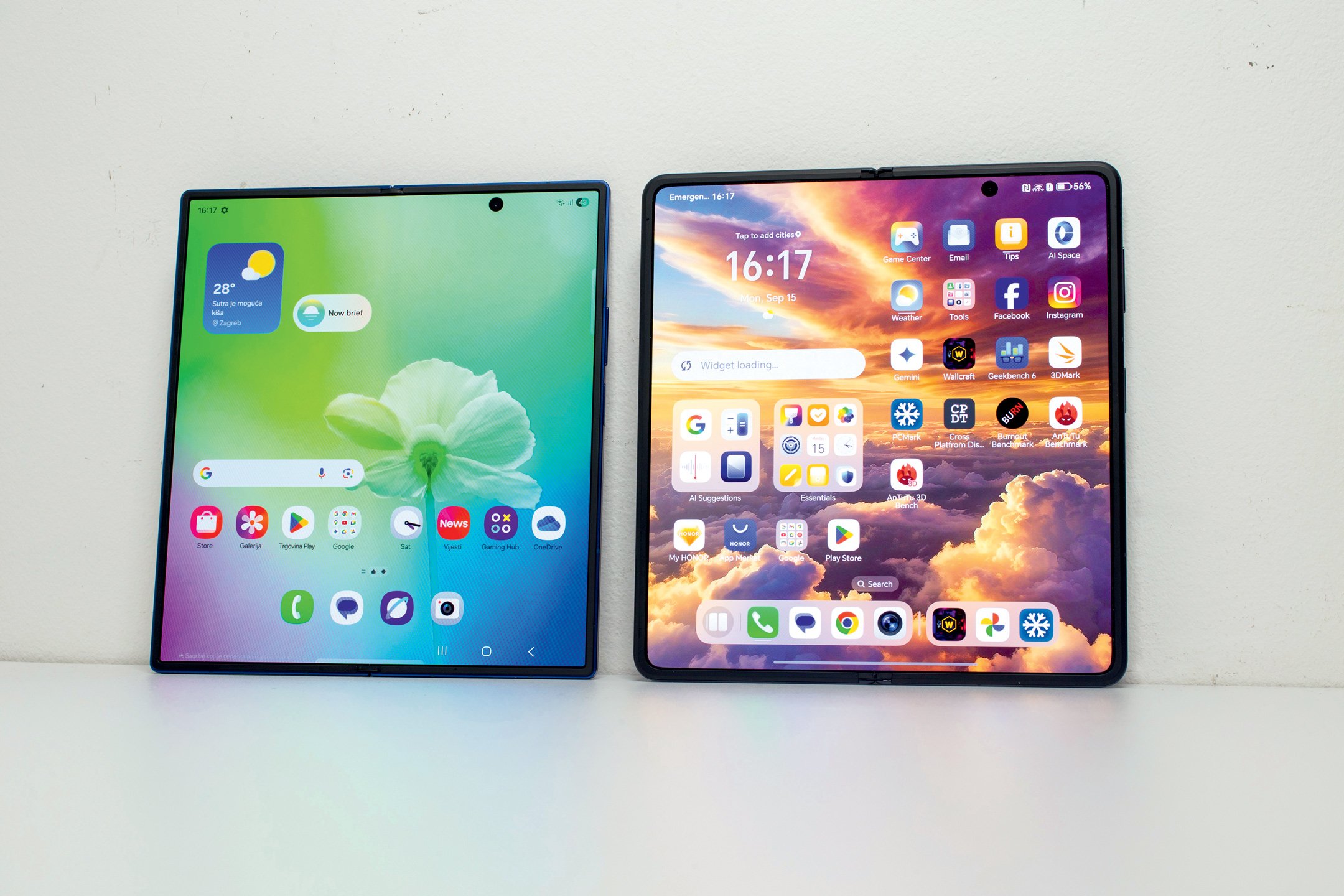 Imajući priliku poigrati se s Honor Magic V5 i Samsung Galaxy Z Fold7 telefonima na testovima, prvo što možemo reći je da se uistinu radi o premium uređajima s kojima će svaki korisnik koji mobitel koristi za više od samih poziva i poruka biti iznimno zadovoljan. Dok smo ih u početku otvarali za svaku sitnicu primarno radi „wow“ faktora, nakon otprilike tjedan dana korištenja ipak smo se naviknuli na kombinirano korištenje vanjskog i unutarnjeg zaslona, ovisno o situaciji i aplikaciji koja se koristi. Korištenje ovih zaslona čini veliku razliku s aspekta korisnika, od držanja mobitela do prilagodbe aplikacija na ovaj format. S obzirom da su danas klasični mobiteli od 6,7” dijagonale standard, vjerujemo da korisnicima veliki ekrani nisu nikakav problem. Mali zasloni su bili velik problem kod prvih preklopnih mobitela, a pri tome mislimo na vanjske zaslone koji danas imaju dimenzije vrlo blizu klasičnom mobitelu, pa su funkcionalno jednaki, što prijelaz na preklopne uređaje čini još jednostavnijim. Ovo je i glavna razlika u odnosu na manje „Flip“ mobitele koji se za gotovo svaku radnju moraju otvarati.