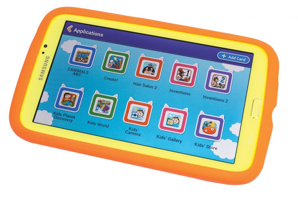 Galaxy Kids namijenjen je djeci, iako se može koristiti i kao tablet za odrasle. Ima dva moda rada – standardni i dječji. Sučelje standardnog načina rada je kao i na svakom drugom tabletu s Android OS-om, a jedina razlika je u ikoni s nazivom „Način rada za djecu“ čijim se dodirom sučelje u potpunosti mijenja u šareno, zabavno i veselo. Takvo je i kućište ovog 7-inčnog tableta koji radi samo na Wi-Fi mreži. Žuta boja kućišta dobro se upotpunjuje s narančastom gumiranom maskom koja tablet štiti prilikom pada na obje strane, a istovremeno se dobije i bolji grip u ruci jer tablet nimalo ne klizi iz ruke. Prebacivanje između standardnog i dječjeg načina rada obavlja se putem šifre pa ako ovaj tablet koristite i za vaše potrebe možete biti sigurni da dijete neće napraviti nešto s vašim sadržajima.