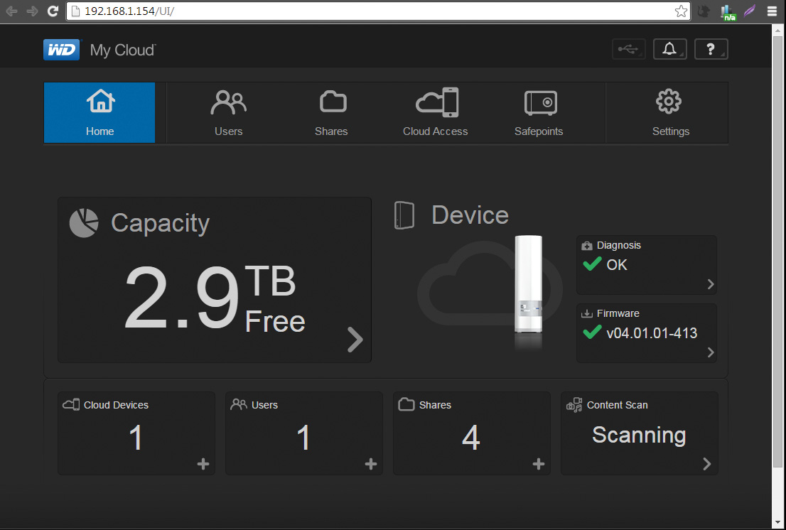 Instalacija ovog diska protekla je bezbolno uz pomoć WD wizarda koji vas vodi korak po korak kroz instalaciju. Postavit će IP adresu uz pomoć DHCP-a i za nekoliko minuta disk je online. Imate li DLNA kompatibilni TV ovaj disk omogućit će vam da multimedijalne sadržaje povlačite direktno na njega. Disk je automatski kreirao Public direktorij koji je javno dostupan na Internetu te sve što stavite u njega možete podijeliti javno na Internetu. Ukoliko ipak želite kontrolirati sadržaj koji dijelite trebate stvarati nove korisnike zaštićene passwordom te tako možete odrediti koji sadržaj želite dijeliti s tim korisnikom. Zgodna opcija ukoliko obitelji želite omogućiti pregledavanje fotografija s privatnih zabava. Putem aplikacije za iOS ili Android možete multimediju uploadati direktno na WD My Cloud.