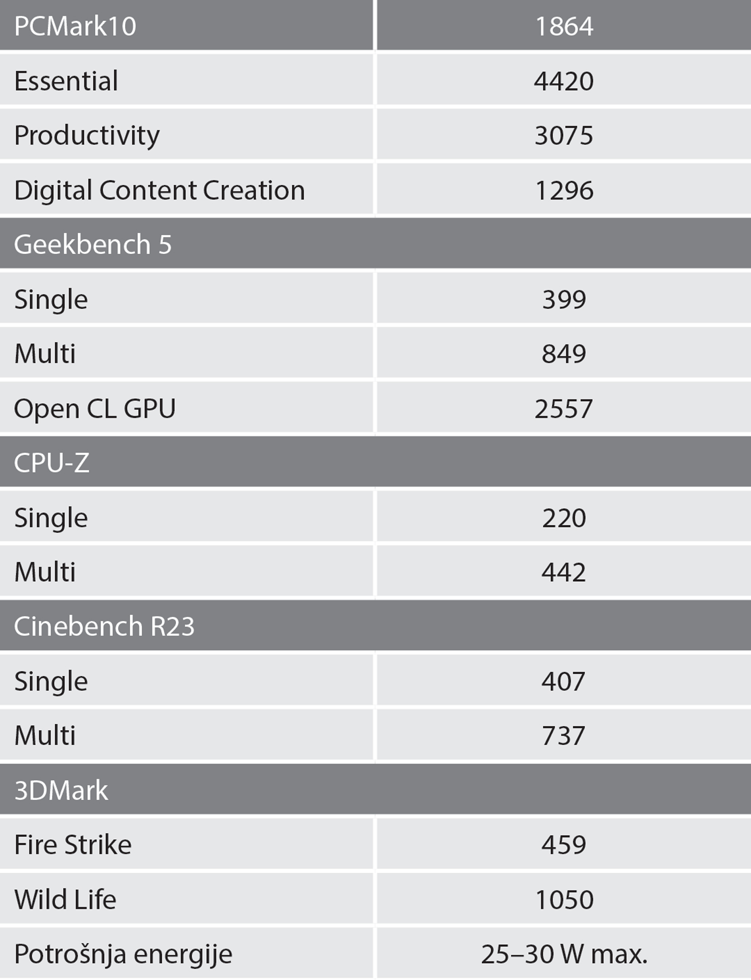 Za potrebe testiranja, mi smo ovdje ugradili NVMe SSD i jednu pločicu DDR4 SO-DIMM memorije. Također smo koristili Windows 11, što je svakako zanimljivo s obzirom na to da je ugrađeni procesor nekakva donja podržana granica za ovaj OS. No u pravilu sve radi bez problema ako imate dovoljno radne memorije.