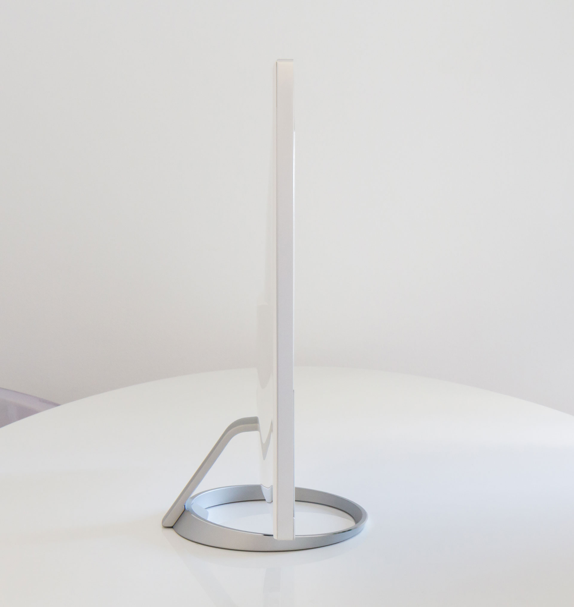 Iako je ekransko staklo do samog metalnog ruba monitora, panel oko sebe ima crni obrub. Sa stražnje strane nalaze se sučelja, a uz HDMI iza se nalaze display port izlaz, dva USB 3.1 porta tipa A i jedan USB Type C (prijenos podataka do 10 GB/s).