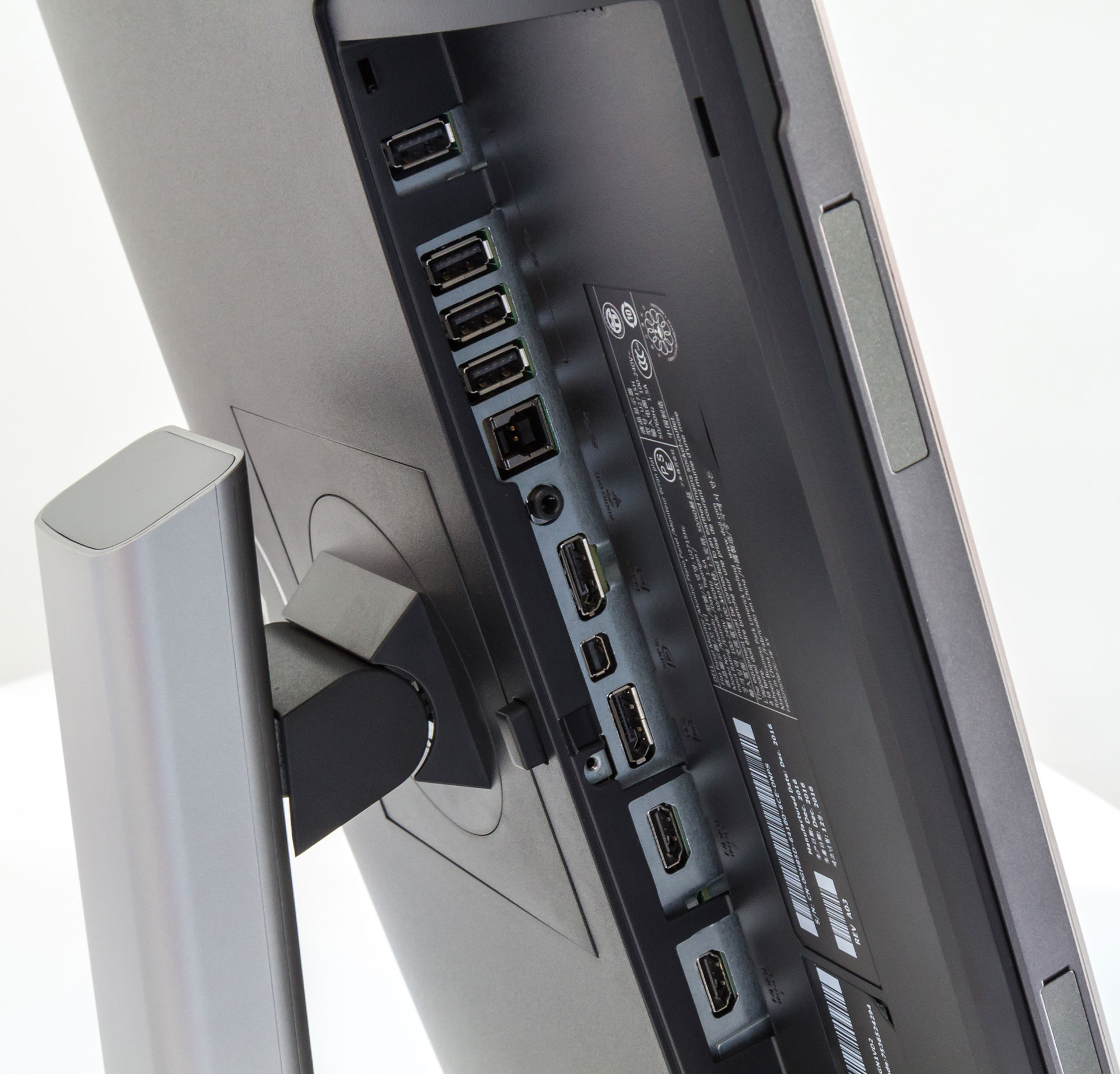 Od konekcija, ovaj monitor ima dva HDMI ulaza s podrškom za MHL, Display i miniDisplayPort, a nema DVI i D-sub konekcije. U kutiji s njim stižu kablovi za DisplayPort, nema HDMI-a. Dizajnom, osim spomenutog tankog ruba koji je ovdje izveden u crnoj plastici, stalak je sive boje brušenog aluminija, a izrađen je od mat plastike. Prilično je težak i predstavlja dobru osnovu za sve egzibicije koje mislite raditi s vrlo pomičnim ekranom. Tipke za prolazak kroz OSD izbornik su dodirne i svijetle tek kad ih dodirnete. Sučelje je identično modelu 2717D. U2715H nema ugrađene zvučnike, a jedan od USB 3.0 nudi mogućnost punjenja uređaja. Što se tiče gaminga, priča je slična prvom testiranom Dellu.