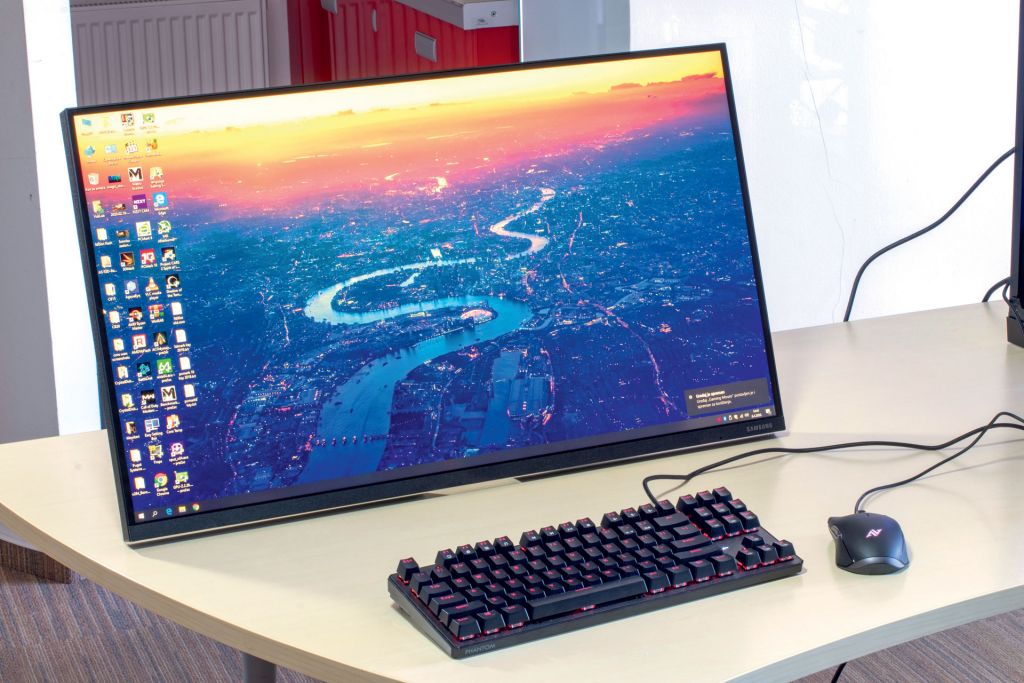 Prvi kojega smo isprobali je Samsungov Space Monitor koji cilja poslovne korisnike. S dijagonalom od 27 inča i rezolucijom od 2560 x 1440 piksela, dobivate optimalnu gustoću kako bi sadržaj bio jasan i čitak za rad u punom radnom vremenu. Sam zaslon osim QHD rezolucije koristi VA tehnologiju matrice, što znači da ima impresivan kontrast od 3000:1, odnosno razlika između bijelog i crnog piksela je visoka. Ovaj efekt najbolje se vidi na gledanju multimedije gdje će boje biti impresivnije, a tamni kutovi scene imat će manje „sive“ nijanse kao kod IPS zaslona. Kako bi se proširile mogućnosti monitora, dobivate i Picture-in-picture mogućnosti, te razne Eco opcije za smanjenje potrošnje energije. Monitor također podržava 144 Hz brzinu osvježavanja koja će biti vrlo primjetna ako se s njome do sada niste susreli. Jedini minus monitora je niska svjetlina od svega 250 nitsa što bi nekima ipak moglo smetati za rad u prostoriji s puno svijetla. Imajte na umu da monitor nije moguće zakretati lijevo-desno radi jedinstvenog dizajna stalka na što svakako treba računati prije kupnje.