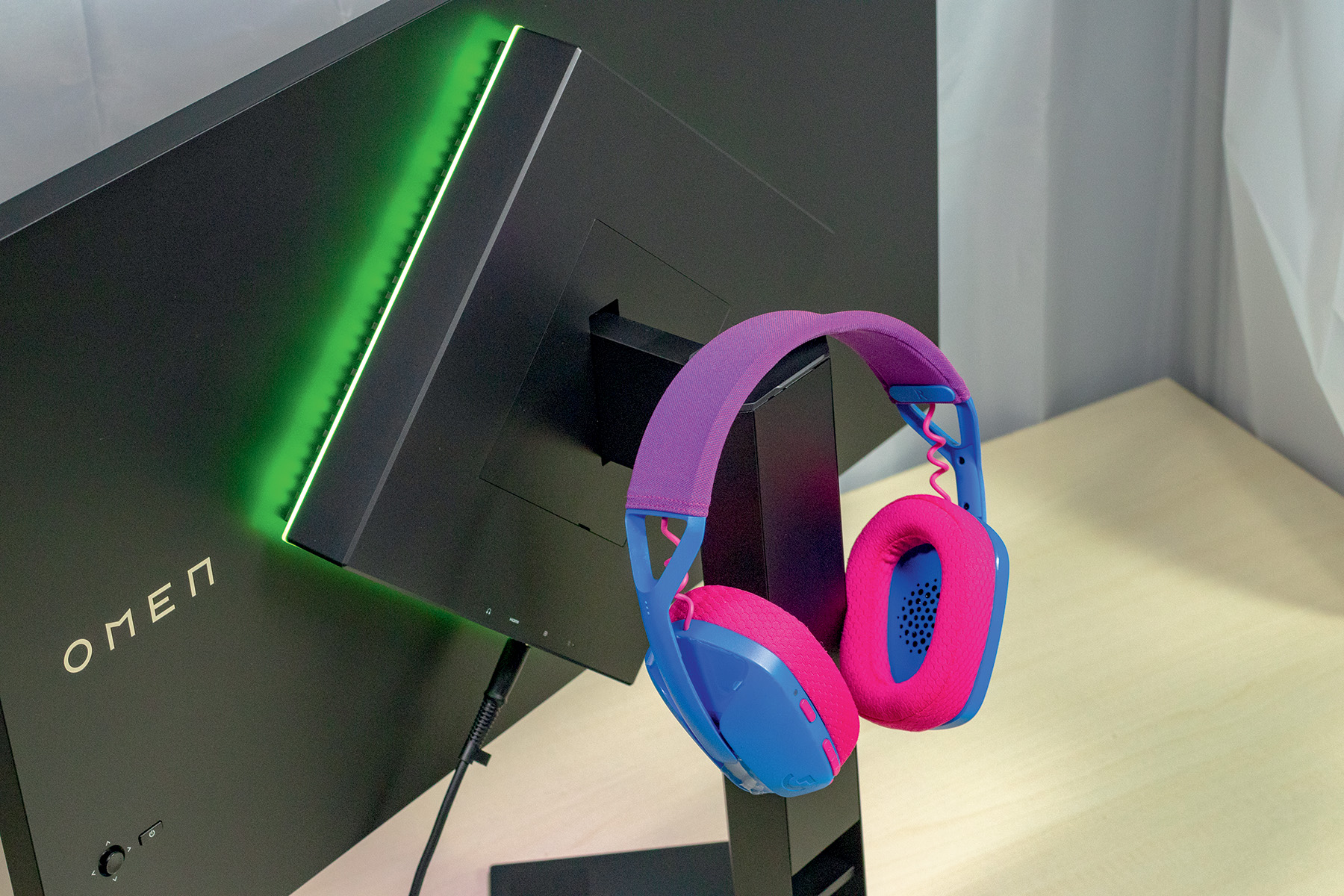 RGB osvjetljenje prava je vizualna atrakcija uz nekoliko zgodnih dostupnih efekata. Sa stražnje desne strane nalazimo još maleni joystick koji služi za navigaciju izbornikom za podešavanje slike, kao i tipku za uključivanje. Omen je kvalitetno napravljen monitor s dizajnom koji svakako odskače od konkurencije. Međutim ergonomija mu je dosta limitirana što je posljedica osebujnog dizajna. Naime nema mogućnosti zakretanja, kao ni pivot opcije, jedino je dostupno podešavanje po visini.