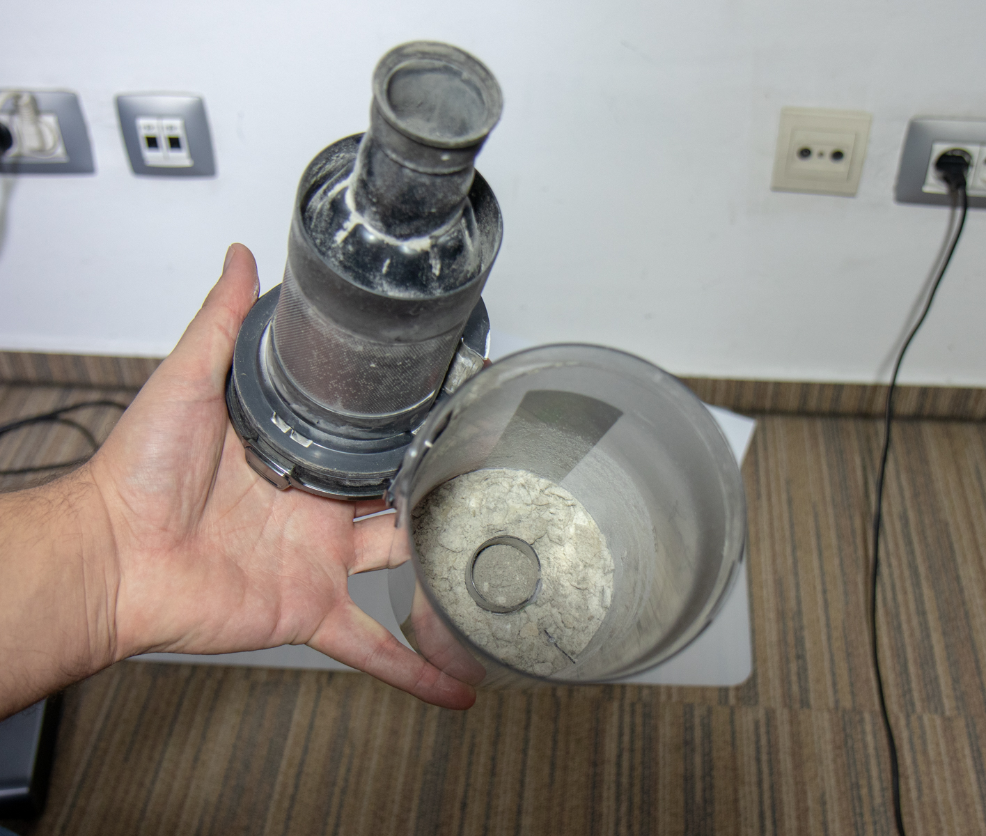 Pražnjenje je vrlo jednostavno te je pritisak na jedan prekidač dovoljan da se spremnik oslobodi te ga onda sami izvučete i ispraznite. Tu i tamo možete lagano izvući filter zraka i onda ručno oprati plastične komponente spremnika.