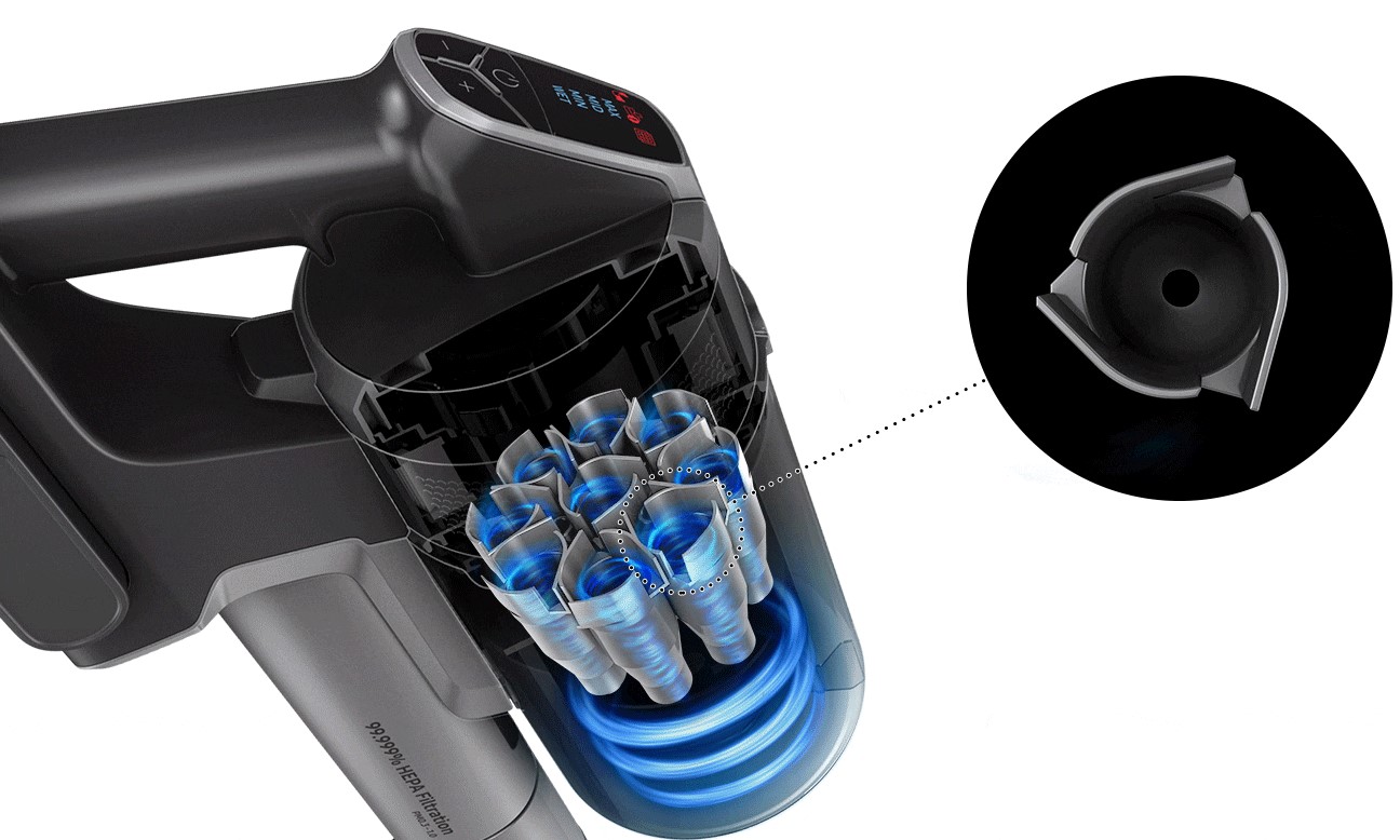 Osim snažnijeg motora, Jet 90 premium dobiva i veću bateriju koja može raditi do sat vremena na jednom punjenju u najslabijem načinu rada, ili do deset minuta kada snagu postavite na maksimum. Ovakva snaga dobiva se jedinstvenim “ciklonskim” dizajnom koji tjera zrak na rotirajuću putanju u više faza i tako osim boljeg usisa osigurava da sve što usiše ostaje unutar same posude za prašinu.