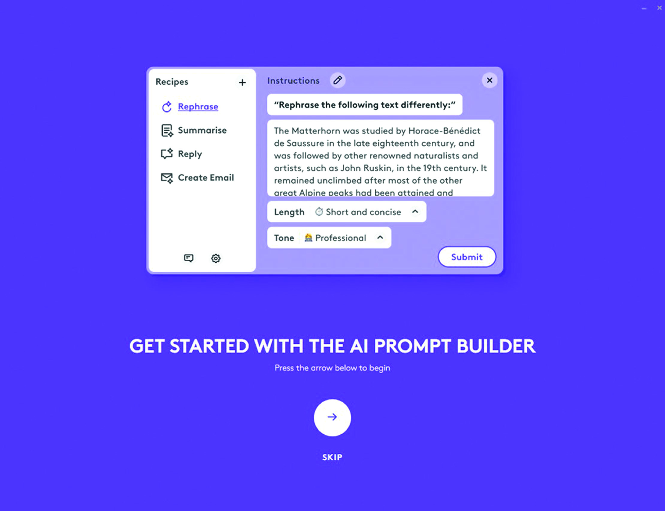 Najnovije AI funkcije: Pritiskom gumba koji predodredite, Logitech automatski pokreće neki od jezičnih modela da vam asistira oko pisanja teksta u razne svrhe.