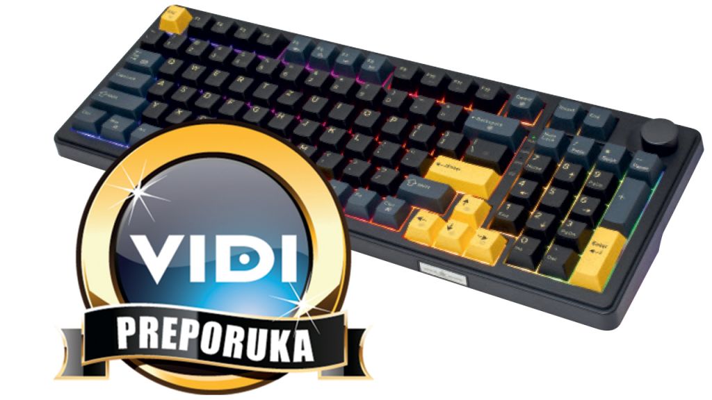 Excalibur je tipkovnica kompaktnog dizajna koja ipak zadržava numerički dio, pa tako zadržava gotovo punu funkcionalnost full-size tipkovnice, sa samo nekoliko tipki čiji pristup sada zahtijeva držanje „Fn“ gumba, odnosno aktivira se kombinacijom drugih tipki. Tipkovnica ima 97 gumba, no zadržava modernu širinu koja daje puno više prostora mišu, kada je riječ o površini radnog stola. Ovdje pričamo o tipkovnici koja ima klasični visoki dizajn mehaničkih tipkovnica, pa savjetujemo nekim korisnicima kojima je nespretna za tipkanje da odmah uzmu i podlogu za zapešće kakve se koriste upravo za ovu namjenu. Excalibur model dolazi u dvije primarne boje: crnoj i bijeloj. Mi na testu imamo crnu boju, a odmah je jasno da se koristi i sekundarna žuta boja za sve detalje na tipkovnici. Tipke imaju vrlo finu, lagano matiranu površinu, ugodnu za tipkanje, koja istovremeno ne privlači otiske prstiju. Ovdje se koriste double-shot tipke, odnosno koristi se dupla plastika, gdje je unutarnji sloj svake tipke žut, pa samim time slova na tipkama neće nikada izblijediti jer nisu samo nacrtana. Jasna žuta slova omogućuju vrlo jednostavno korištenje tipkovnice i ako ne koristite pozadinsko osvjetljenje, koje je specifično dizajnirano u stilu „halo“ efekta, odnosno svijetli oko samih tipki, a ne osvjetljuje toliko same oznake gumba. Vidjet ćete to kada podignete bilo koju kapicu gumba, gdje je sam prekidač, a samim time i osvjetljenje ispod njega, okrenuto tako da osvjetljava donji dio tipke, dok su znakovi pri vrhu. Ovo je možda i najbolji uvod u svestranost ove tipkovnice jer se kao i kod većine mehaničkih tipkovnica koristi standardiziran prihvat u obliku plusa „+“ za tipke, te je lako kupiti zamjenske tipke koje su prozirnije i imaju znakove u donjem dijelu tipke, kako bi više svjetla bilo fokusirano na same znakove. Samim time možete kupiti razne boje tipki, kao i razne layoute. Excalibur dolazi sa US layoutom, pa smo odmah lako zamijenili „Y“ i „Z“ kapice tipki za brzu prilagodbu, pomoću alata upravo za tu namjenu koji dolazi sa samom tipkovnicom. Imajte na umu da svaki red tipki na ovakvoj tipkovnici dolazi pod malo drugačijim nagibom radi ergonomije, pa ovakve zamjene možda nisu idealne, već savjetujemo kupnju dediciranih tipki sa HR layoutom za najbolje iskustvo.
